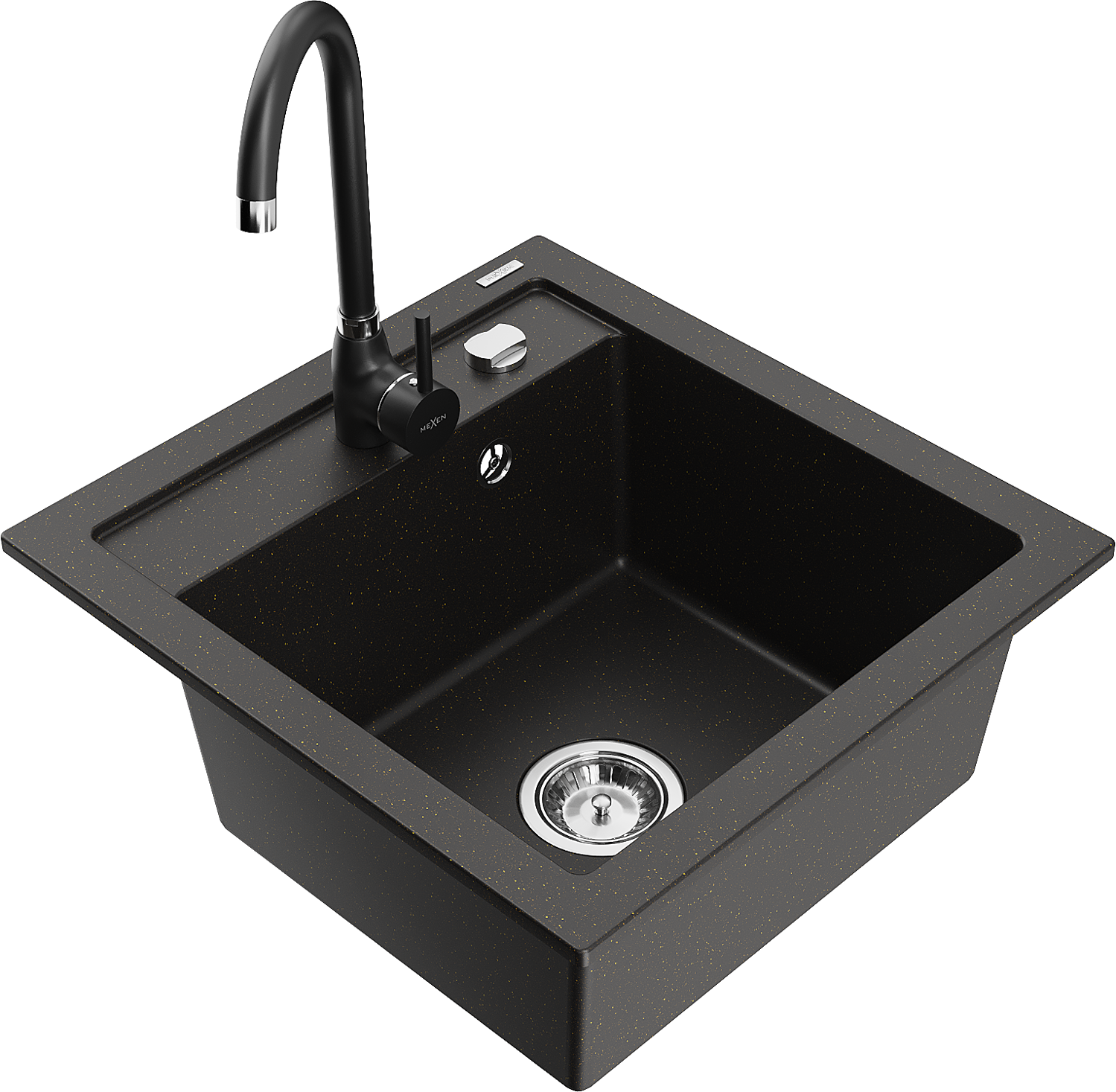Mexen Vito chiuvetă de bucătărie din granit cu 1 cuvă și baterie Telma, negru/auriu metalizat - 6503-75-670200-70