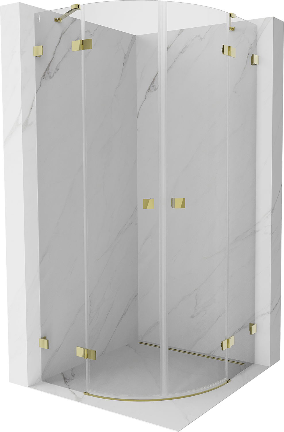 Mexen Lunar cabină de duș semicirculară cu deschidere 80 x 80 cm, transparentă, aurie - 833-080L-080P-50-00