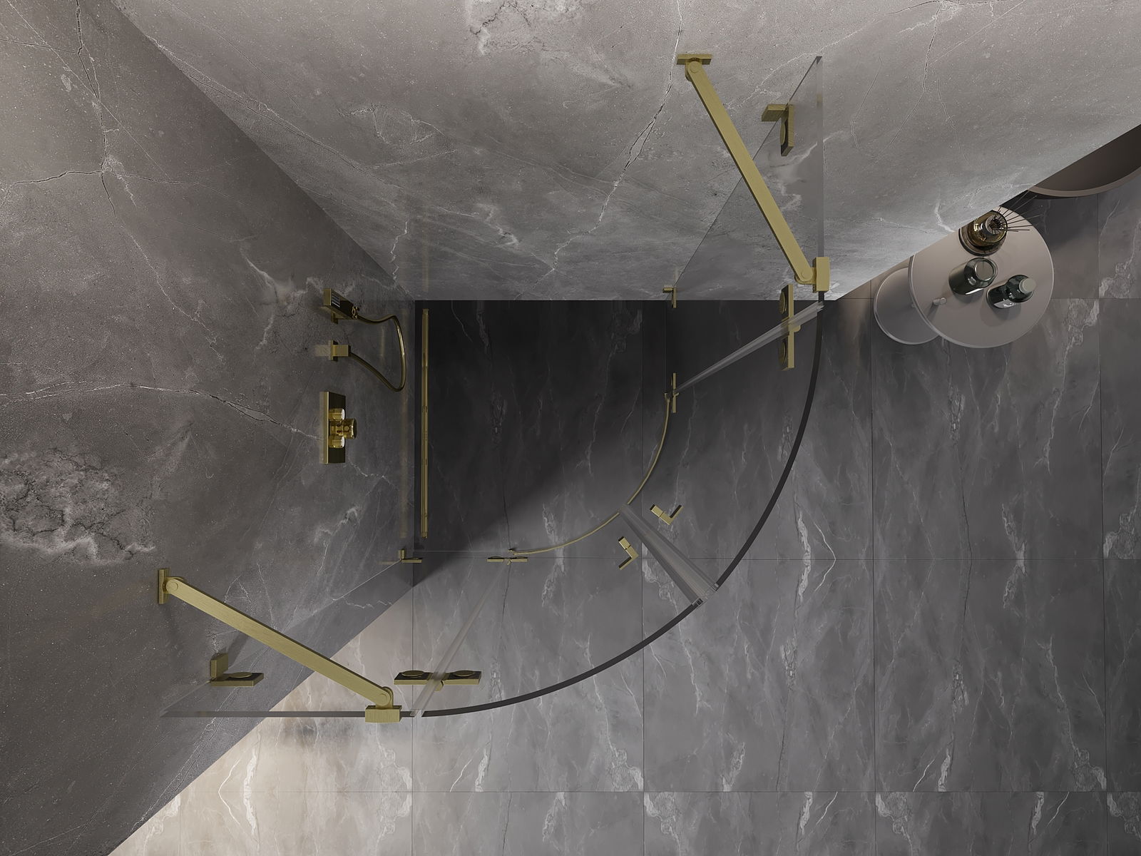 Mexen Lunar cabină de duș semicirculară pivotantă 80 x 80 cm, transparentă, auriu periat - 833-080L-080P-55-00