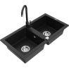 Mexen Mario chiuvetă granit cu 2 compartimente și baterie de bucătărie Telma, negru/argintiu - 6504-73-670200-70