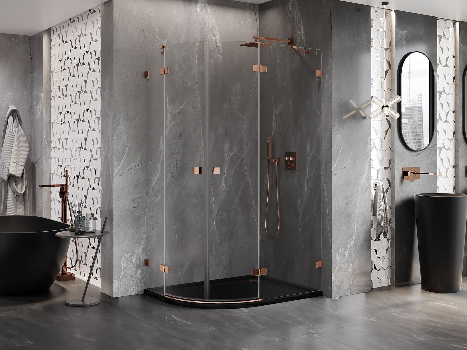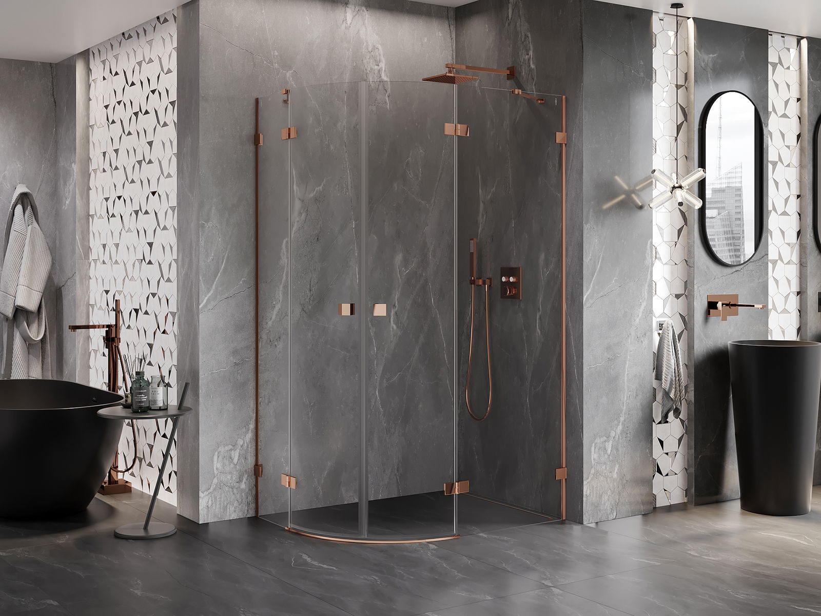 Mexen Lunar cabina de duș semirotundă rabatabilă dreapta 100 x 90 cm, transparent, aur roz - 833-100P-090L-60-00