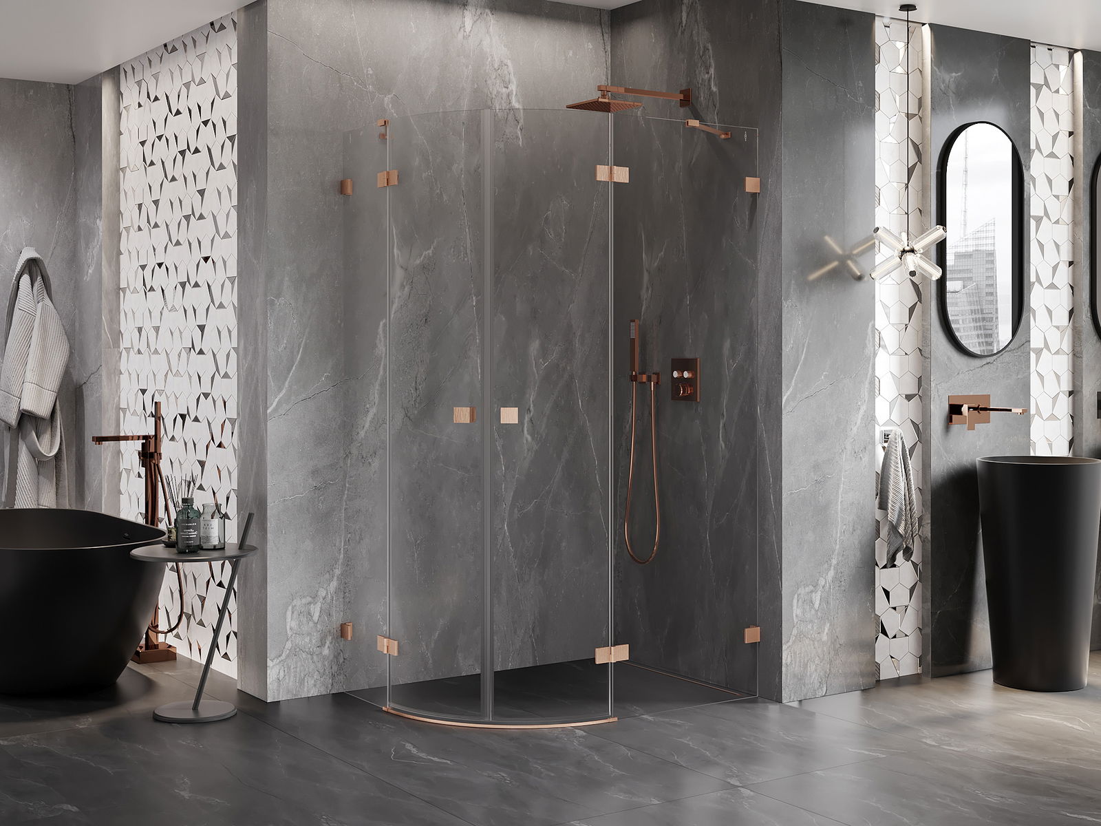 Mexen Lunar cabină de duș semirotundă cu deschidere spre dreapta 80 x 70 cm, transparent, cupru periat - 833-080P-070L-65-00