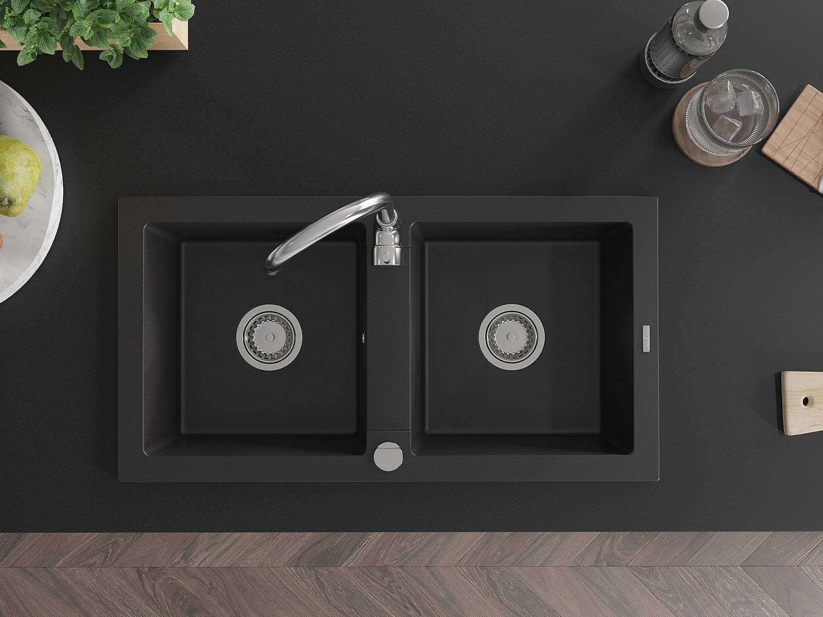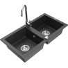 Mexen Mario chiuvetă de granit cu 2 compartimente și robinet de bucătărie Telma, negru - 6504-77-670200-00