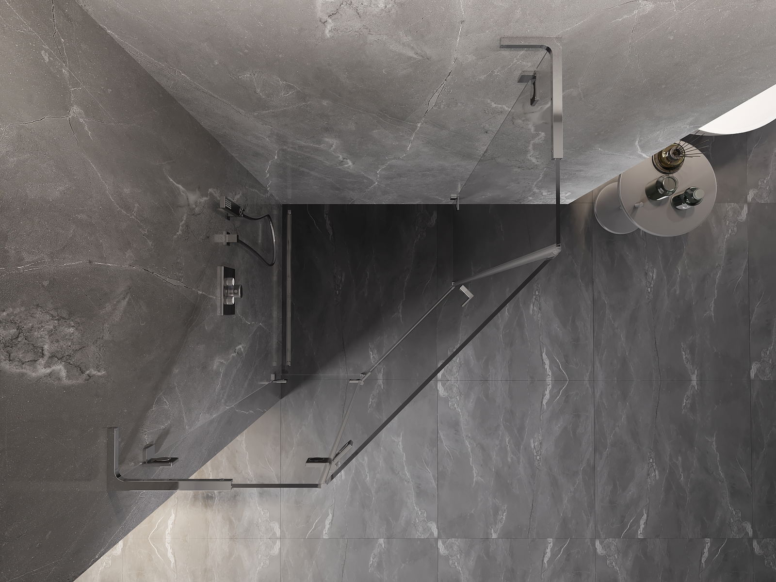 Mexen Lunar L cabină de duș pentagonală cu deschidere stânga 100 x 100 cm, transparent, crom - 831L-100L-100P-01-00-L
