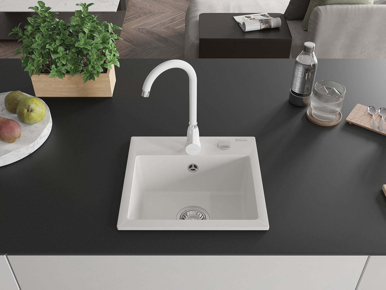 Suprafața chiuvetei este rezistentă la pete și decolorarea, datorită căreia este ușor de curățat și își păstrează culoarea mult timp. Estetică și practic completarea fiecărei bucătării.