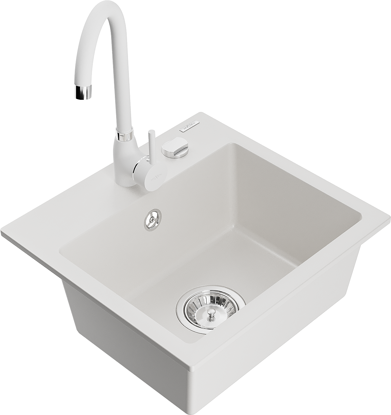 Mexen Milo chiuvetă de granit cu 1 compartiment cu baterie de bucătărie Telma, alb - 6505-20-670200-20