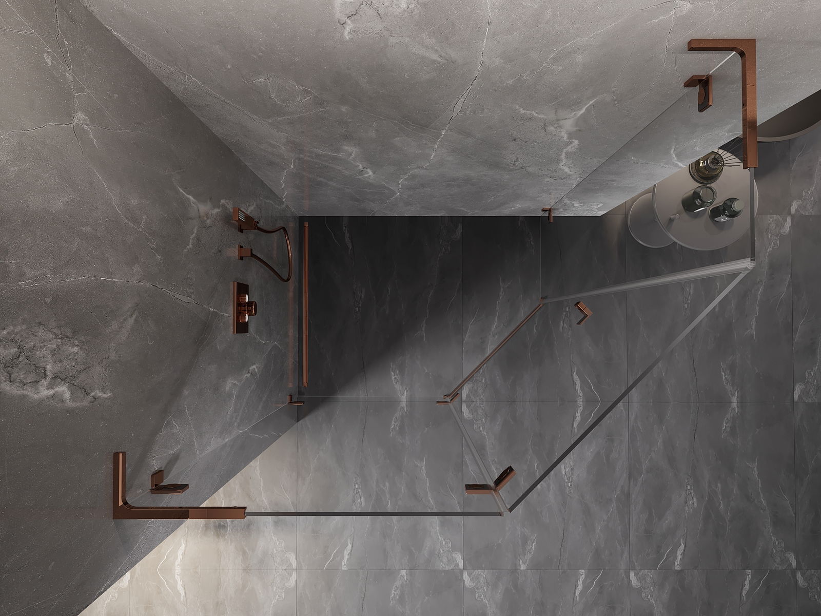 Mexen Lunar L cabină de duș pentagonală cu ușă stânga 100 x 90 cm, transparentă, aur roz - 831L-100L-090P-60-00-L