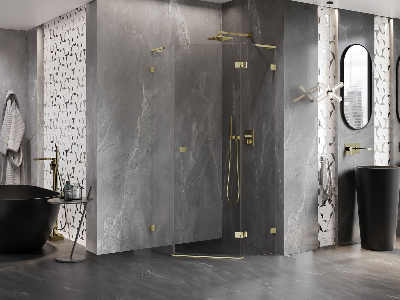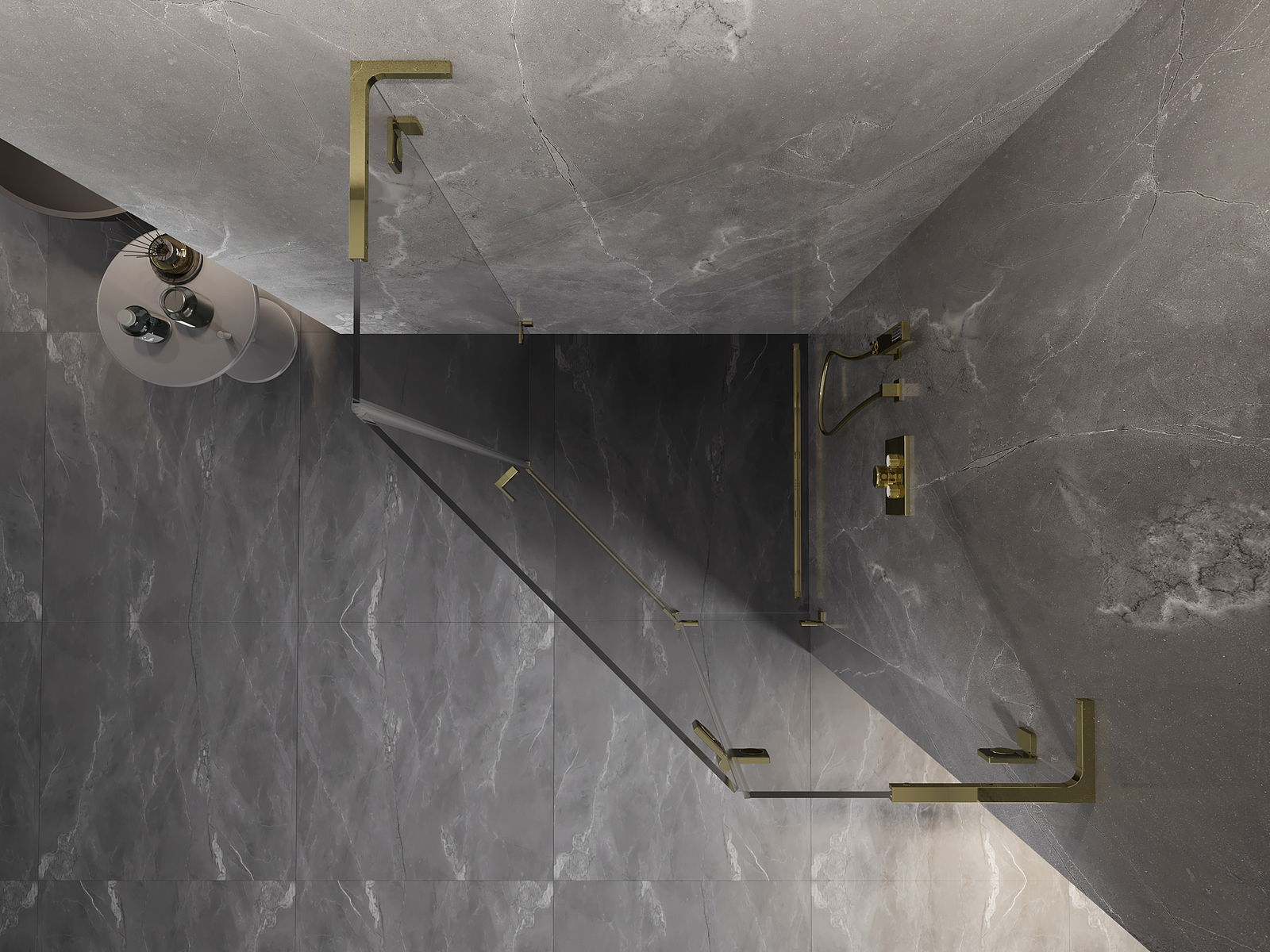 Mexen Lunar L cabina de duș pentagonală pivotantă dreapta 80 x 80 cm, transparentă, aurie - 831L-080P-080L-50-00-P