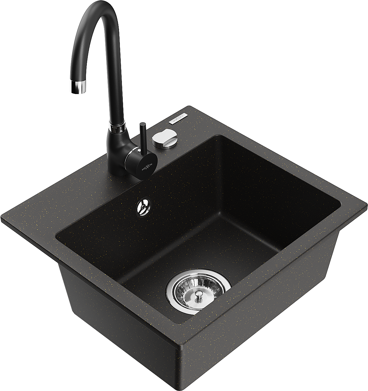 Mexen Milo chiuvetă de granit cu 1 compartiment cu baterie de bucătărie Telma, negru/auriu - 6505-75-670200-70