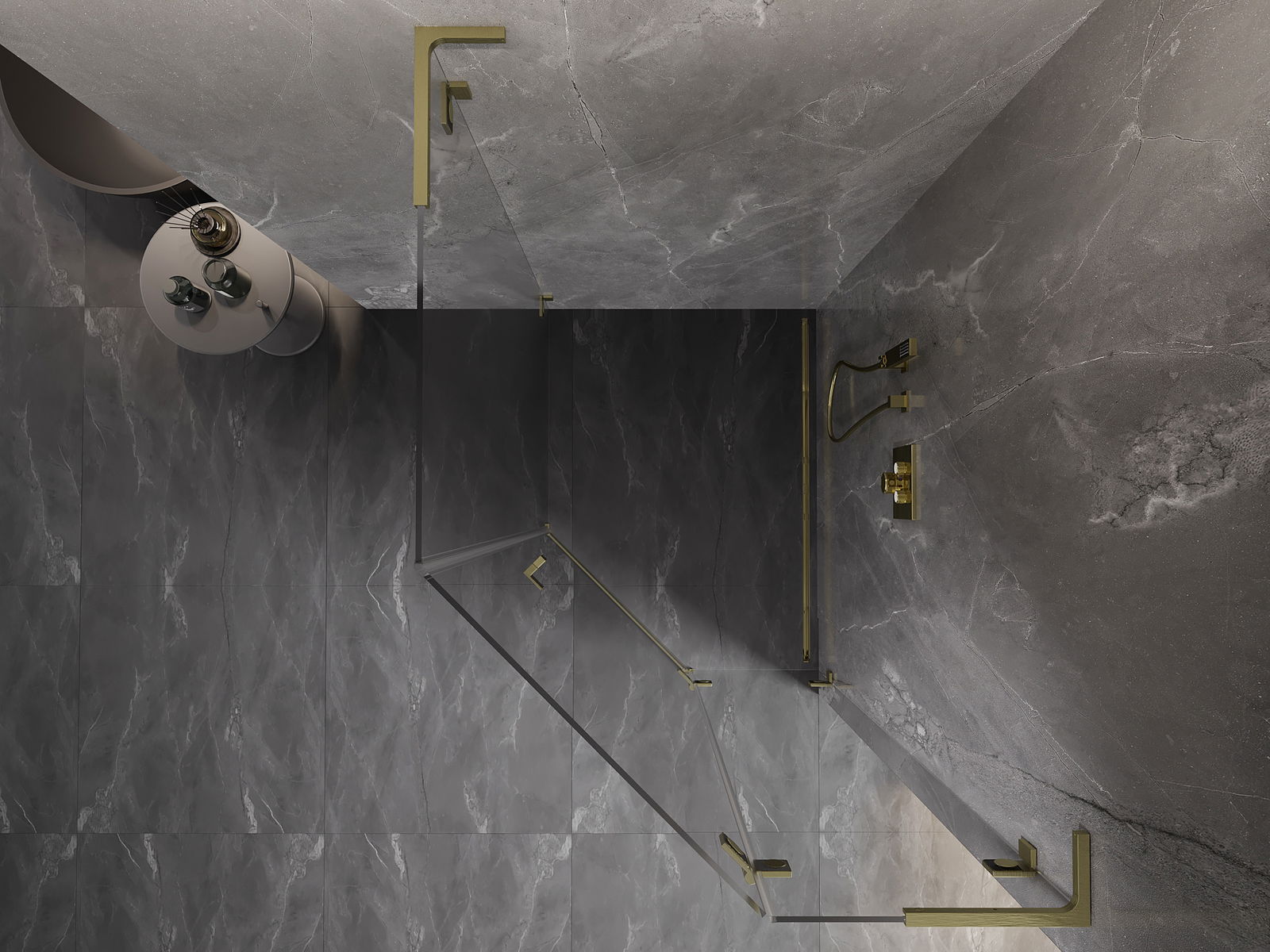 Mexen Lunar L cabină de duș pentagonală cu deschidere dreapta 90 x 100 cm, transparentă, auriu periat
