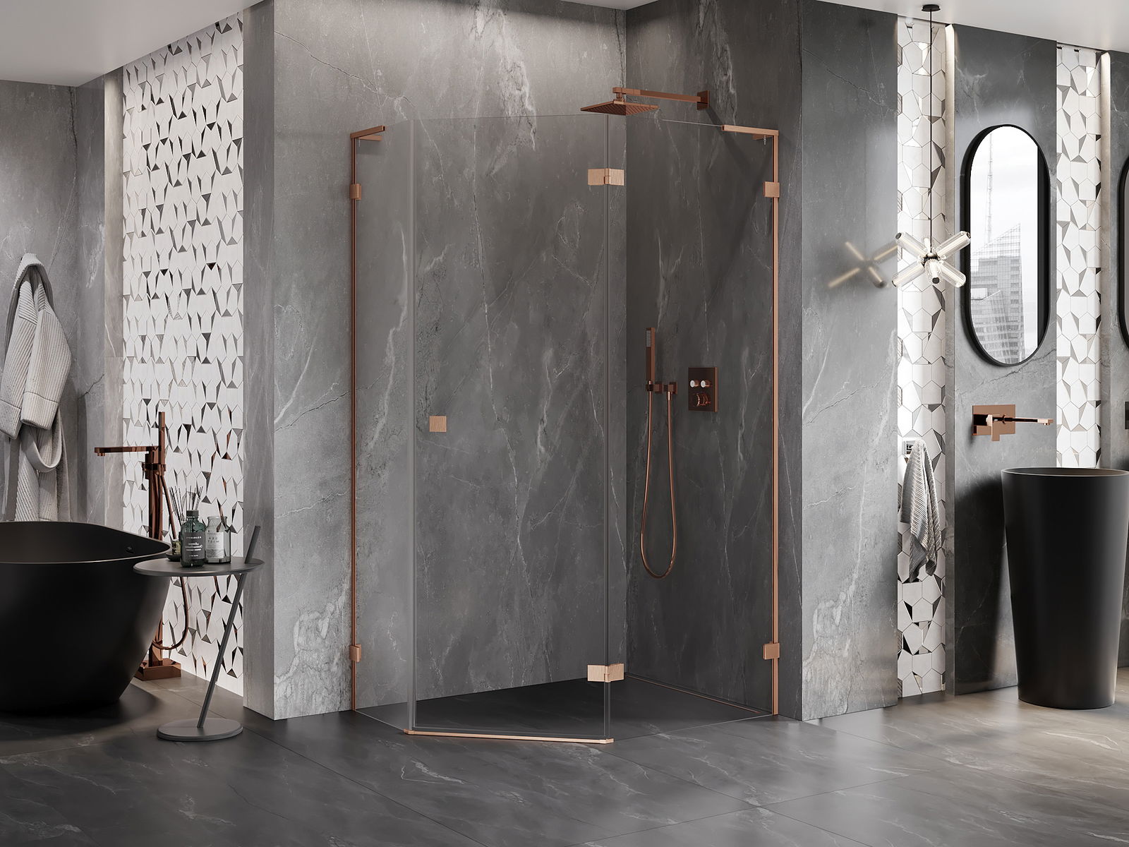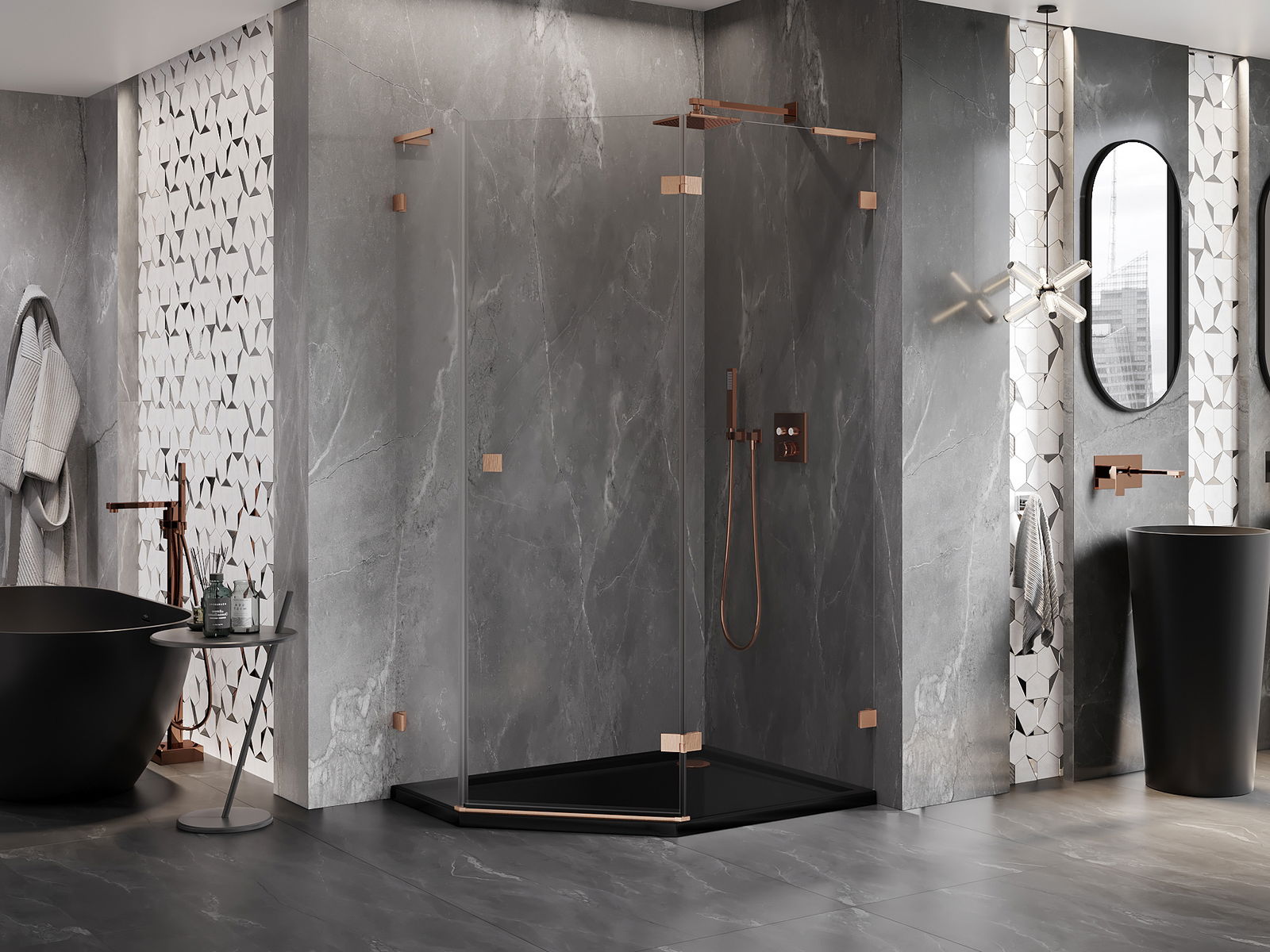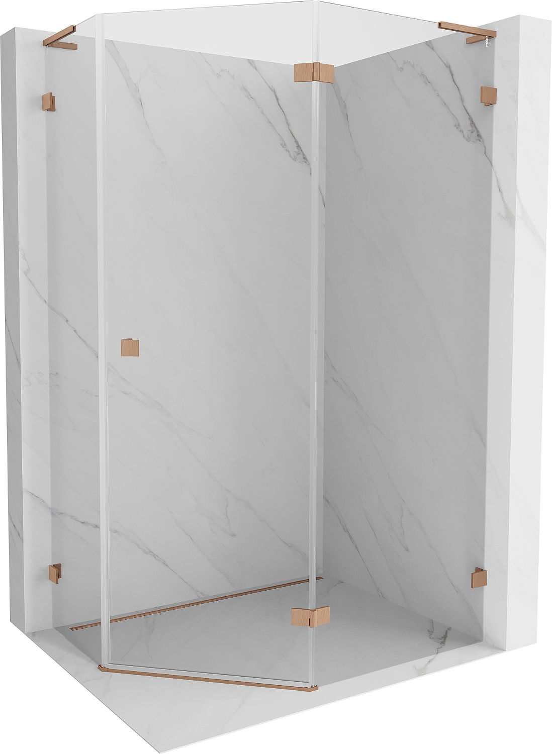 Mexen Lunar L cabină de duș pentagonală batantă dreapta 100 x 80 cm, transparentă, cupru periat - 831L-100P-080L-65-00-P