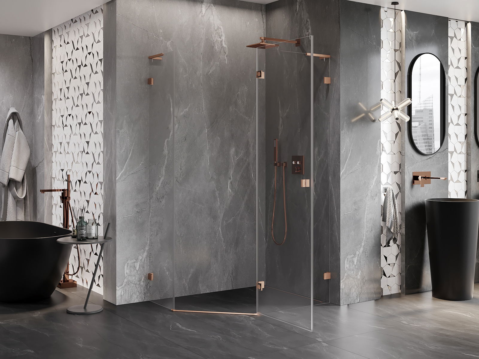 Clemele și balamalele sunt fabricate din alamă foarte durabilă și, în plus, formează o suprafață aliniată cu sticla. Este o alegere excelentă care îmbină eleganța, durabilitatea și designul modern. Datorită acestor soluții, dușul câștigă în estetică și facilitează întreținerea curățeniei.