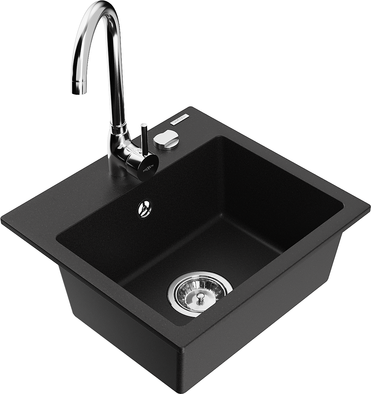 Mexen Milo chiuvetă din granit cu 1 compartiment și baterie de bucătărie Telma, negru - 6505-77-670200-00