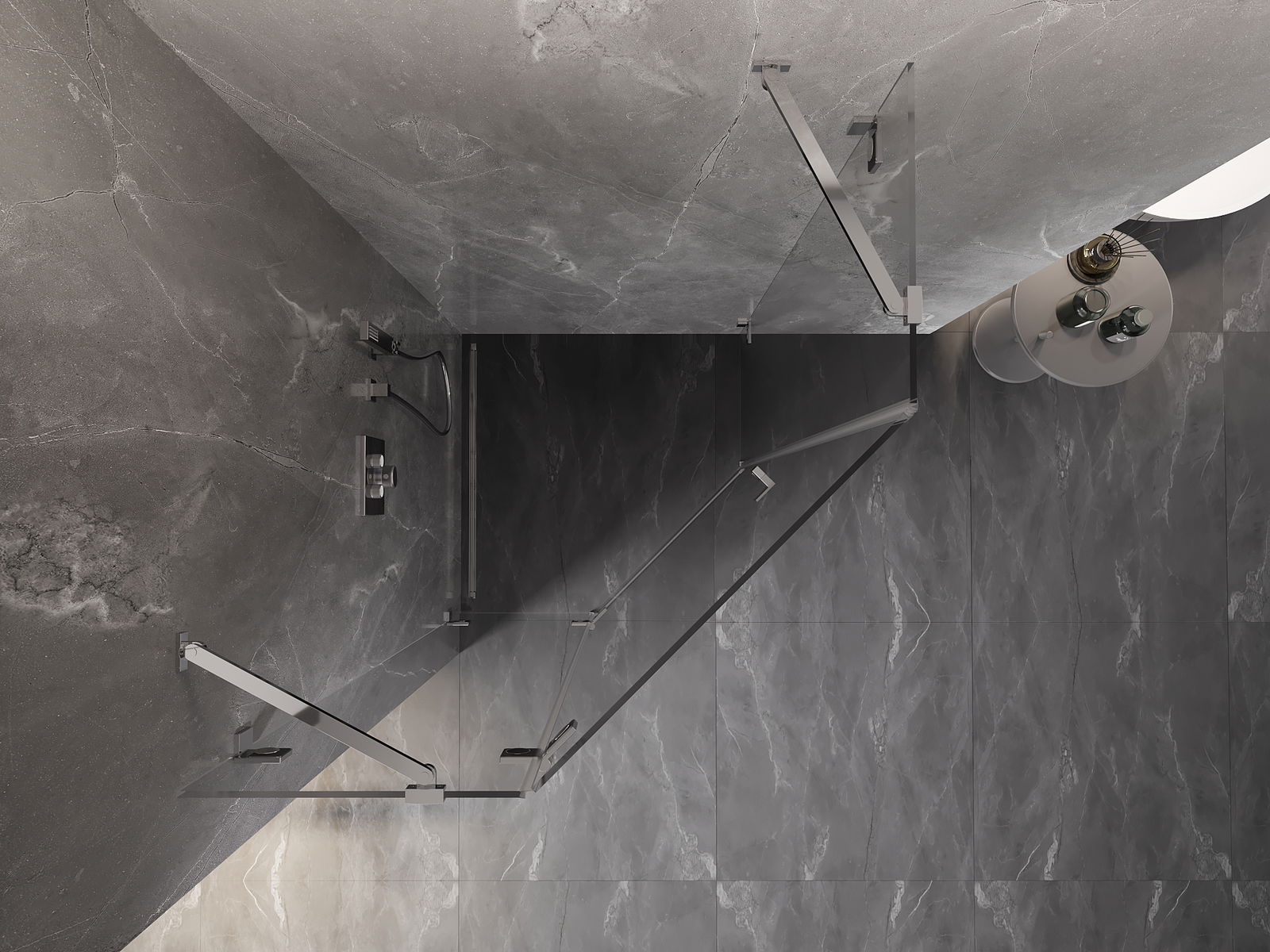 Mexen Lunar cabină de duș pentagonală cu ușă batantă stânga 100 x 100 cm, transparentă, crom - 831-100L-100P-01-00-L