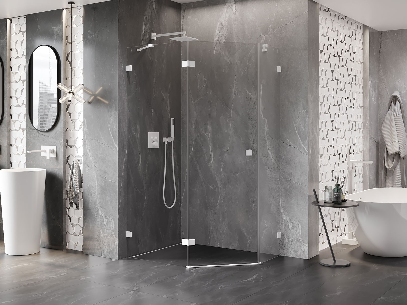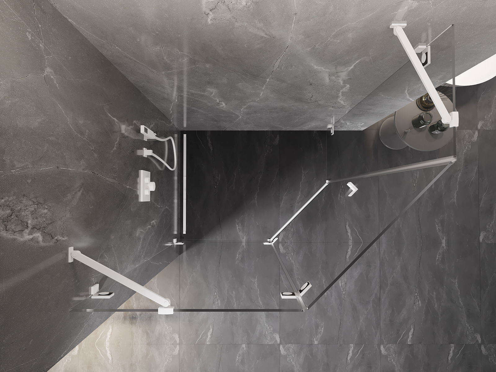 Mânerul practic și confortabil este realizat din metal durabil și rezistent. Forma modernă, combinată cu un finisaj asortat cu culoarea profilelor, conferă un aspect modern și elegant întregului, subliniind estetica fiecărei băi.