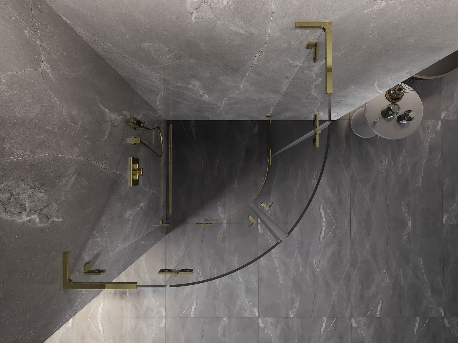 Mexen Lunar L cabină de duș semicirculară cu ușă batantă 70 x 70 cm, transparent, auriu - 833L-070L-070P-50-00