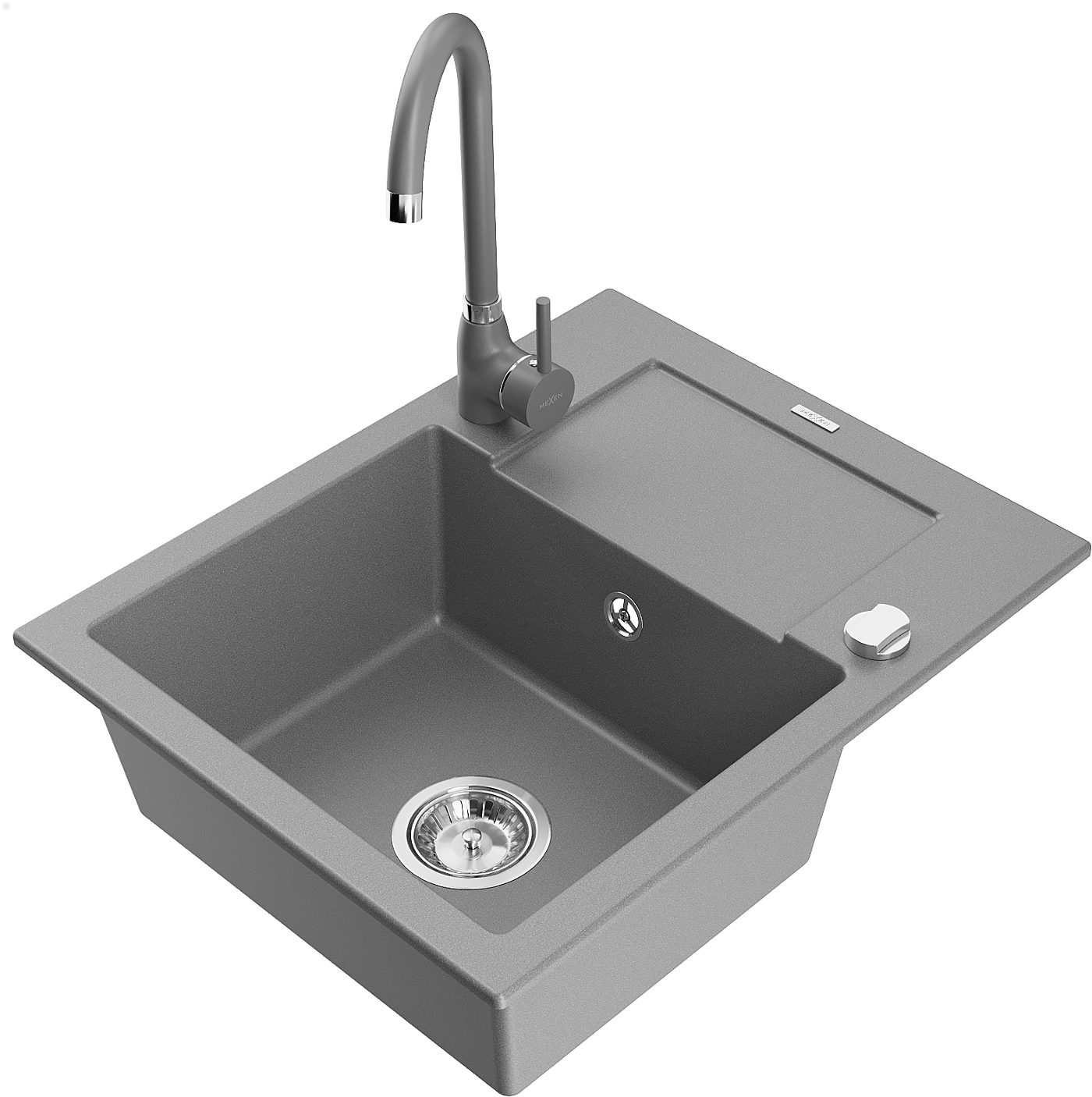 Mexen Enzo chiuvetă de granit cu 1 compartiment cu scurgător și baterie de bucătărie Telma, gri - 6506-71-670200-71