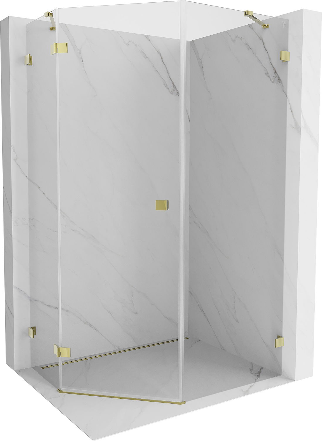 Mexen Lunar cabină de duș pentagonală cu ușă batantă stânga 90 x 100 cm, transparentă, aurie - 831-090L-100P-50-00-L
