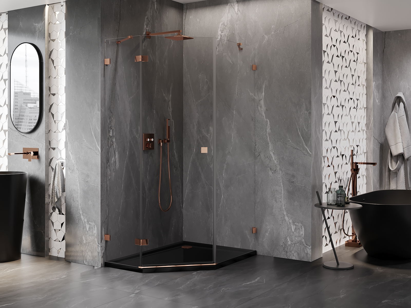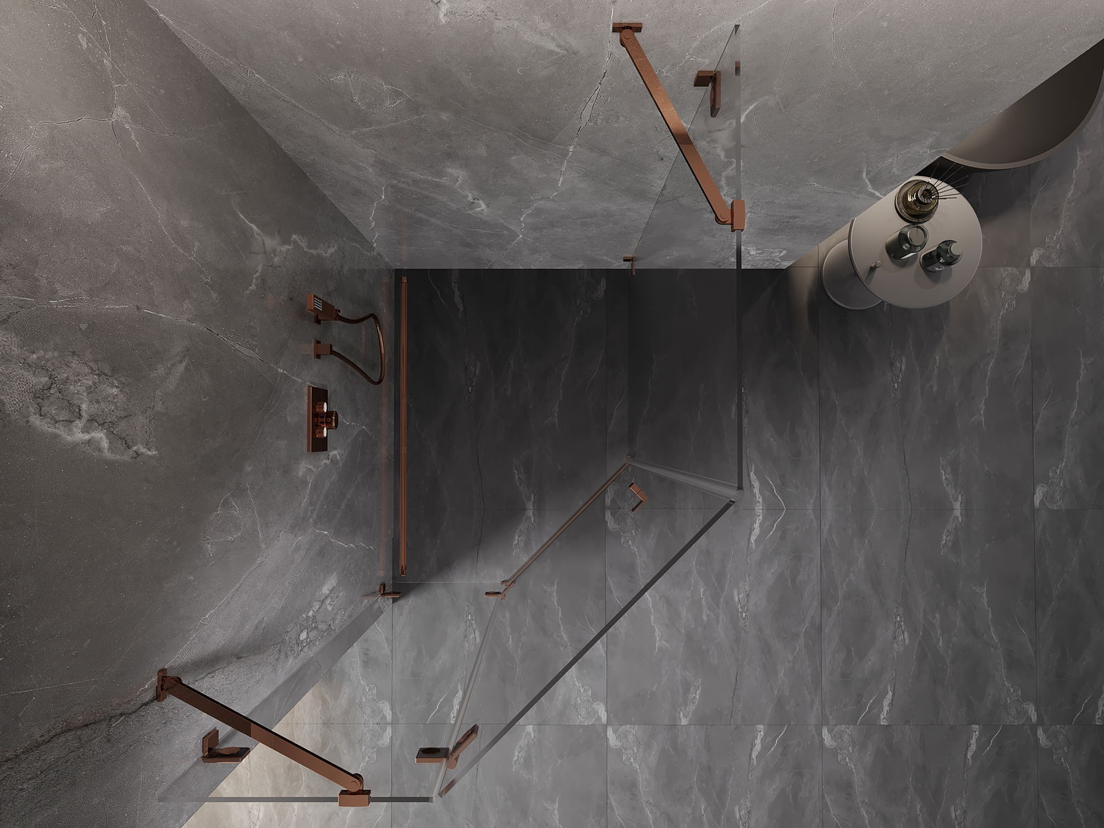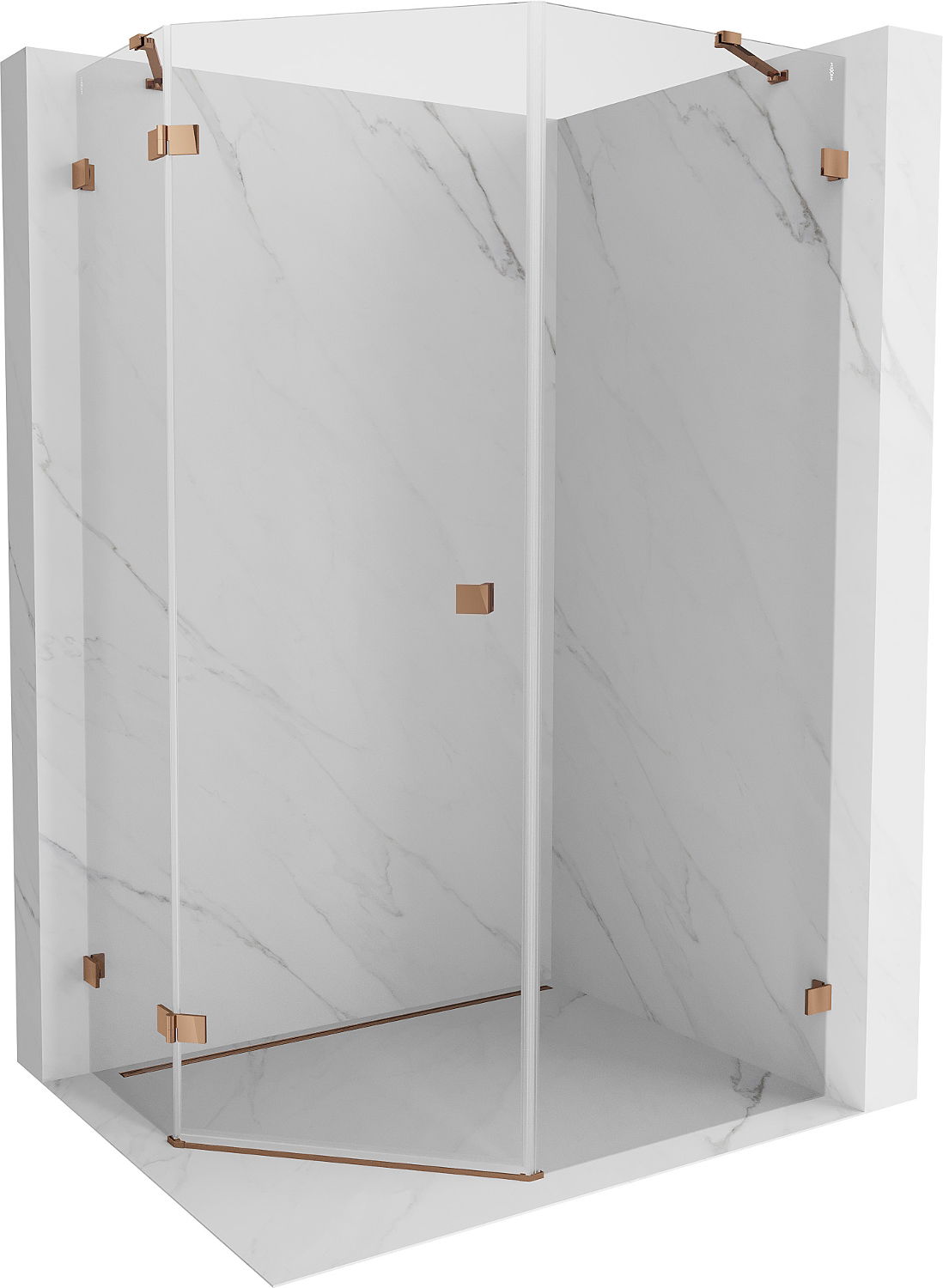 Mexen Lunar cabină de duș pentagonală cu ușă batantă stânga 80 x 90 cm, transparent, aur roz - 831-080L-090P-60-00-L