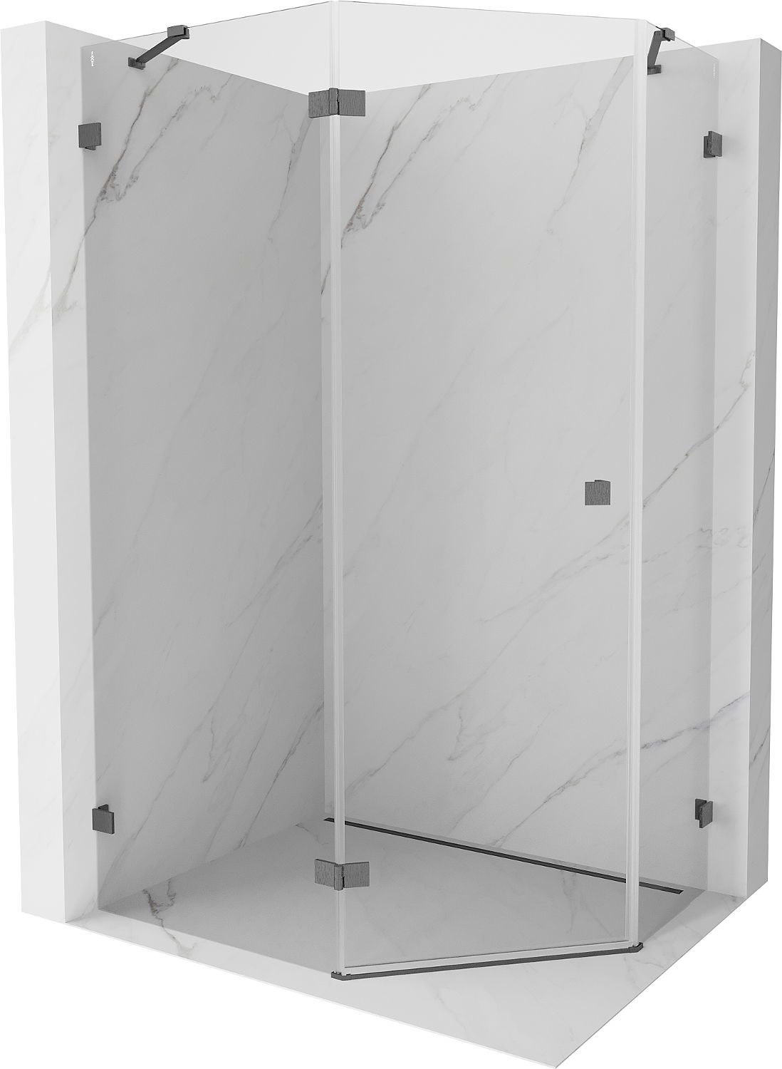 Mexen Lunar cabină de duș pentagonală cu ușă batantă stânga 90 x 80 cm, transparent, gri armat periat - 831-090L-080P-66-00-L