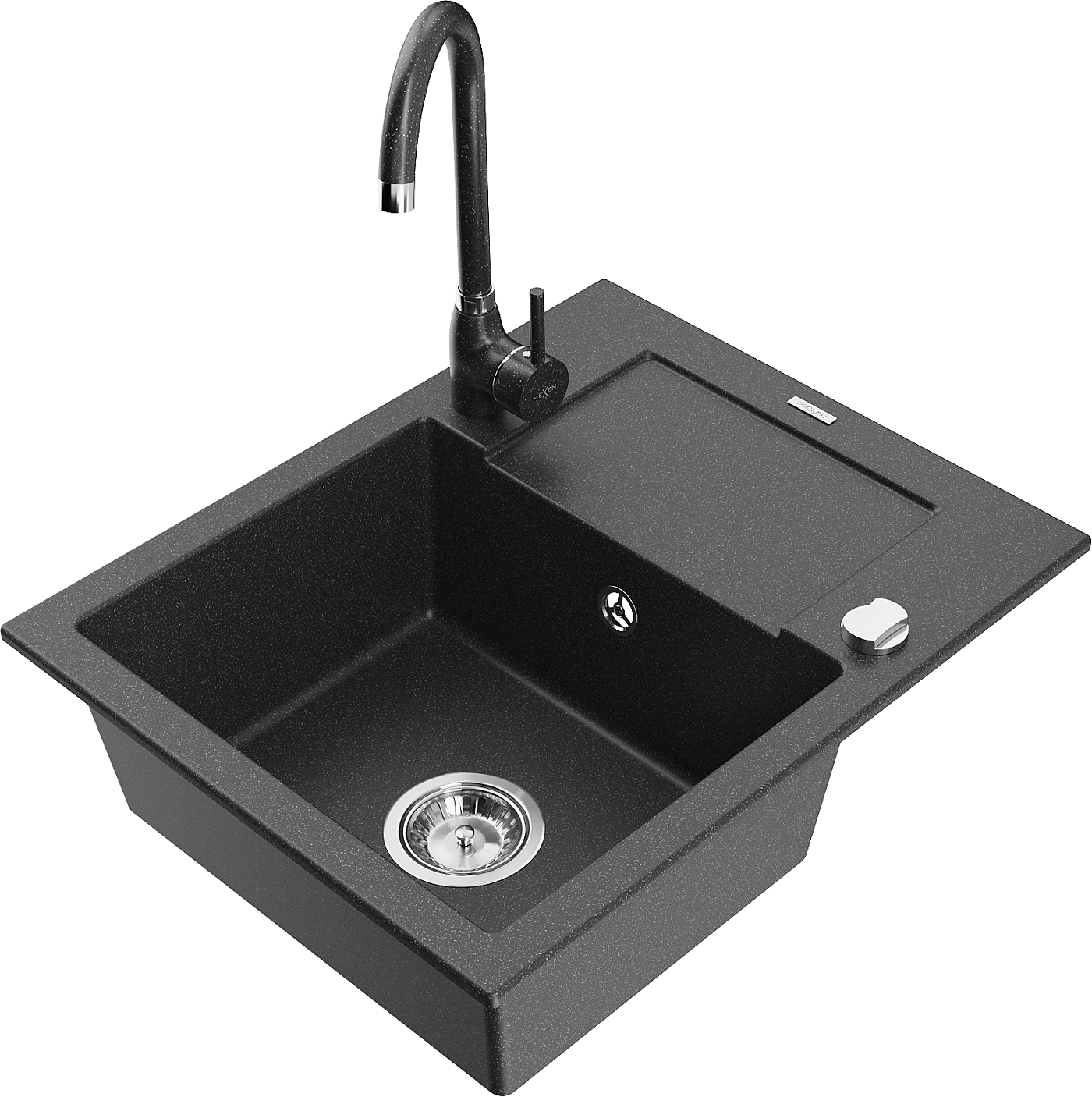 Mexen Enzo chiuvetă de bucătărie din granit cu 1 compartiment, cu scurgător și baterie de bucătărie Telma, negru cu picatele - ?