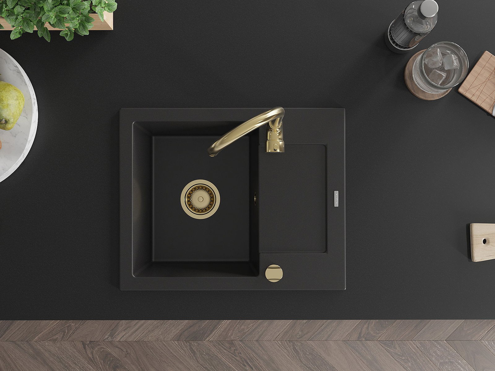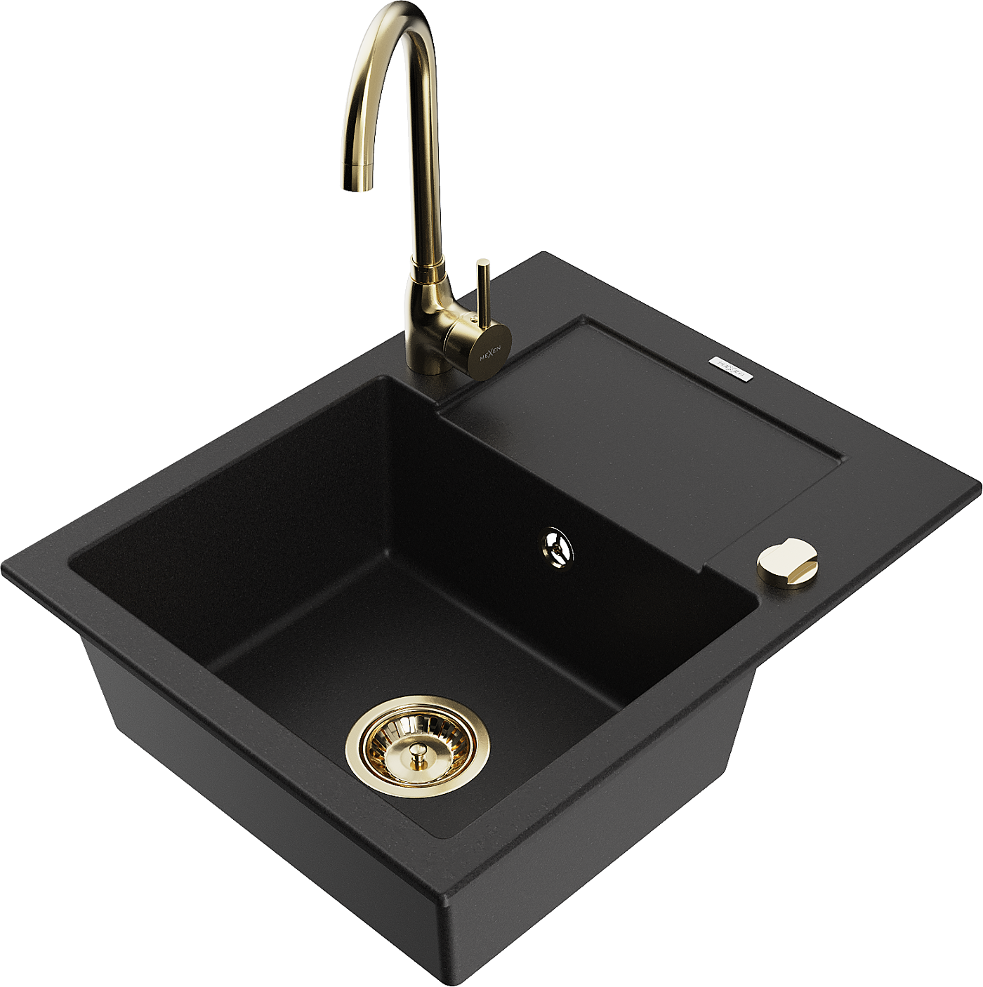 Mexen Enzo chiuvetă din granit cu 1 cuvă cu scurgător și baterie de bucătărie Telma, negru - 6506-77-670200-50