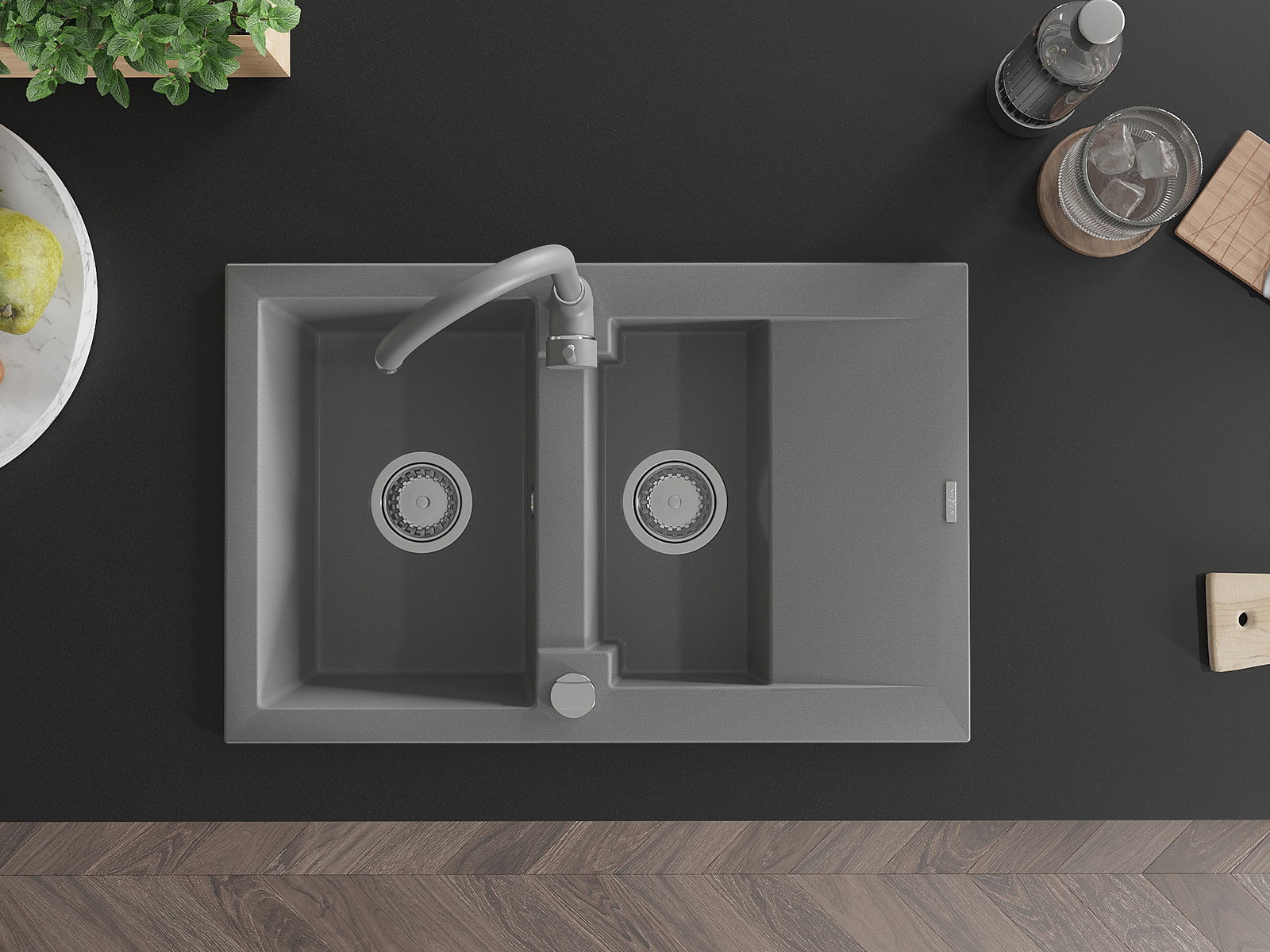 Datorită sistemului de montare universală, chiuveta este reversibilă, iar scurgerea poate fi montată pe blat la stânga sau la dreapta. În acest fel, puteți ajusta cu ușurință pagina la nevoile și condițiile dvs.