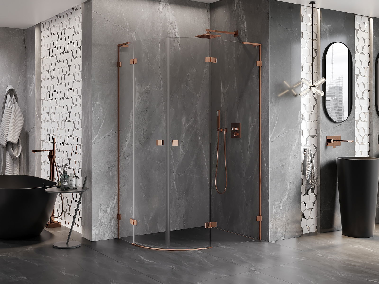 Mexen Lunar L cabină de duș semicirculară rabatabilă dreaptă 100 x 80 cm, transparentă, aur roz - 833L-100P-080L-60-00