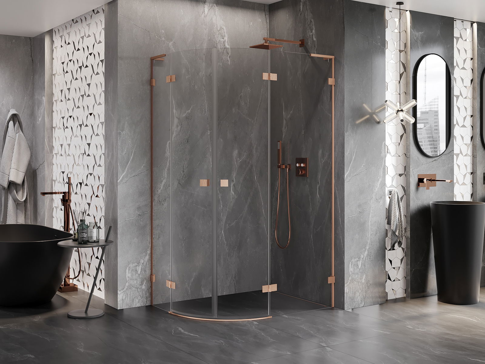 Mexen Lunar L cabina de duș semirotundă, deschidere dreapta, 80 x 70 cm, transparent, cupru șlefuit - 833L-080P-070L-65-00