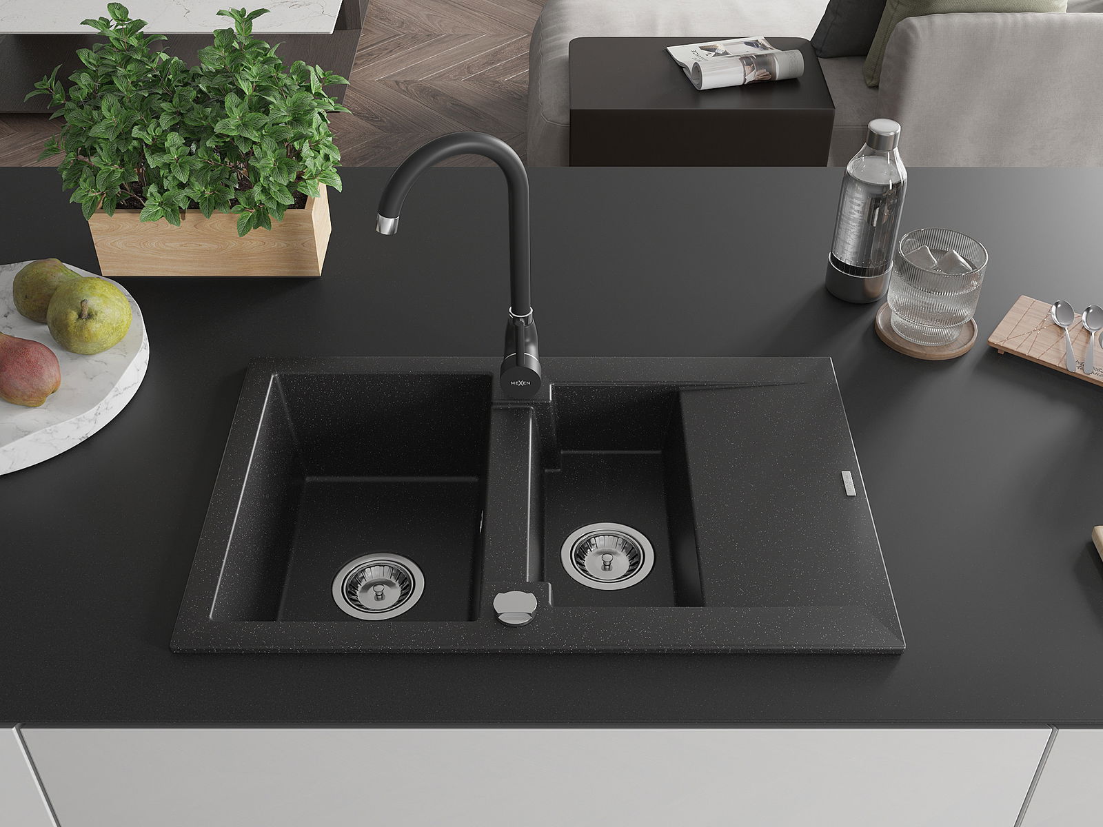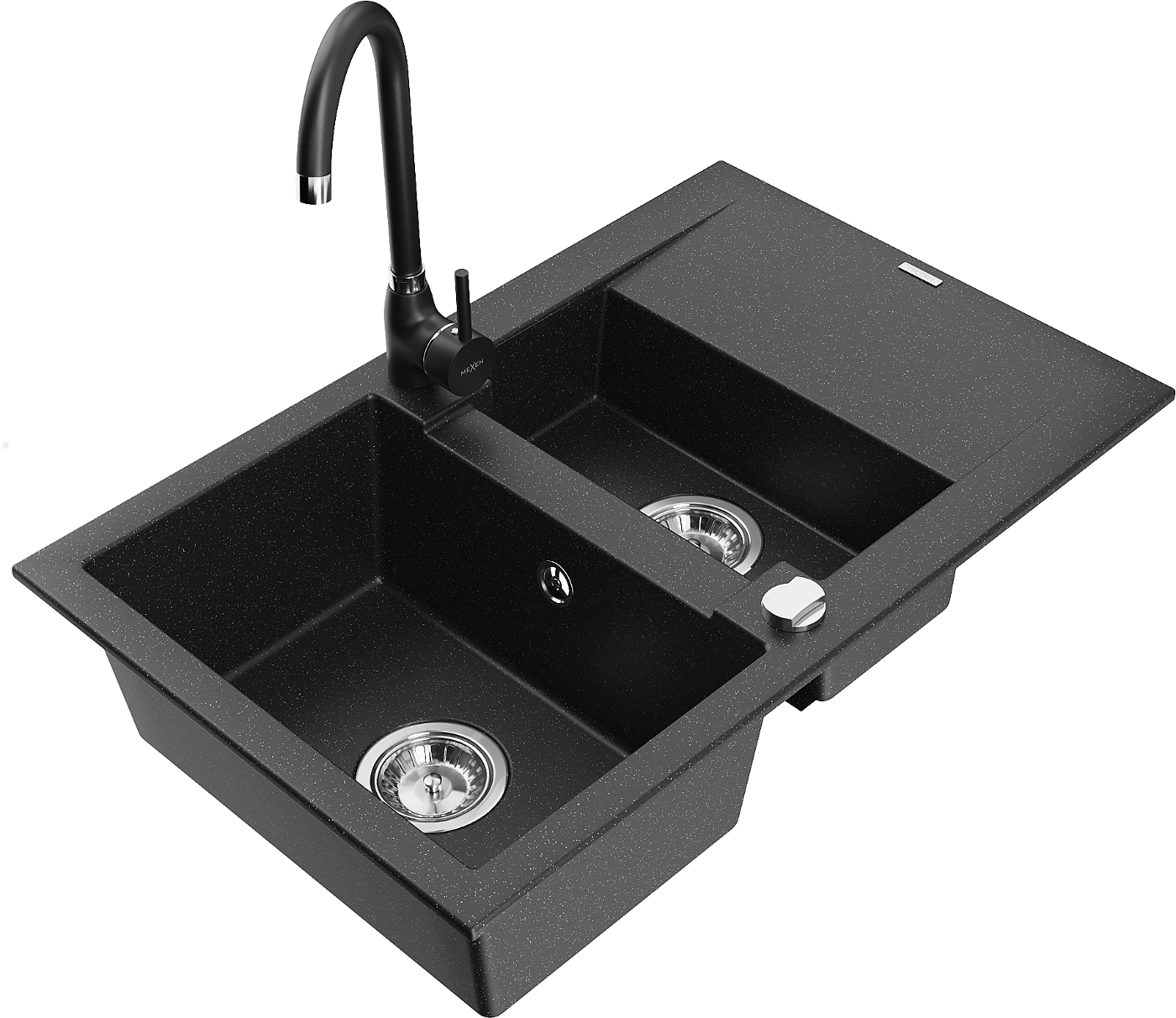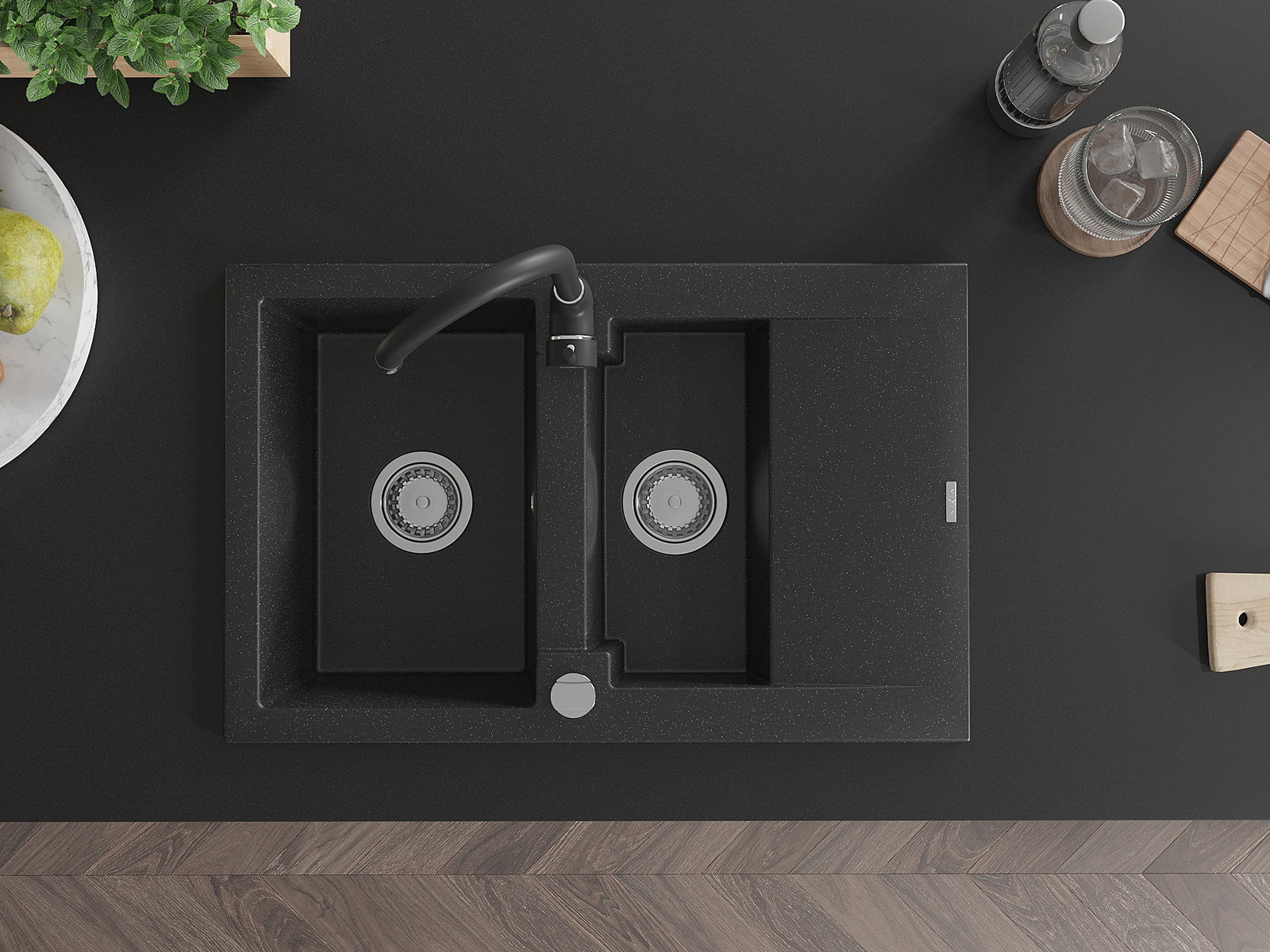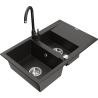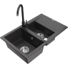 Mexen Gaspar chiuvetă de granit cu 1,5 compartimente cu scurgător și baterie de bucătărie Telma, negru/argintiu