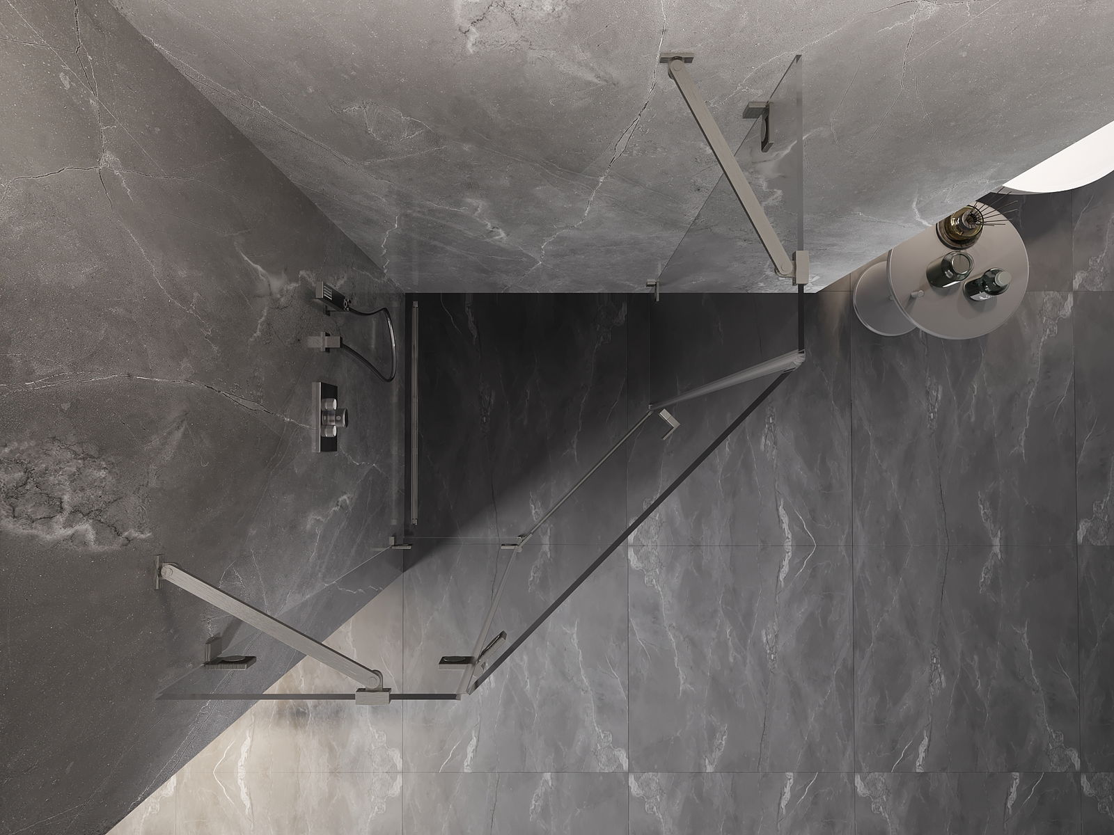 Mexen Lunar cabina de duș pentagonală, oscilantă, stânga, 80 x 80 cm, transparentă, nichel periat - 831-080L-080P-97-00-L