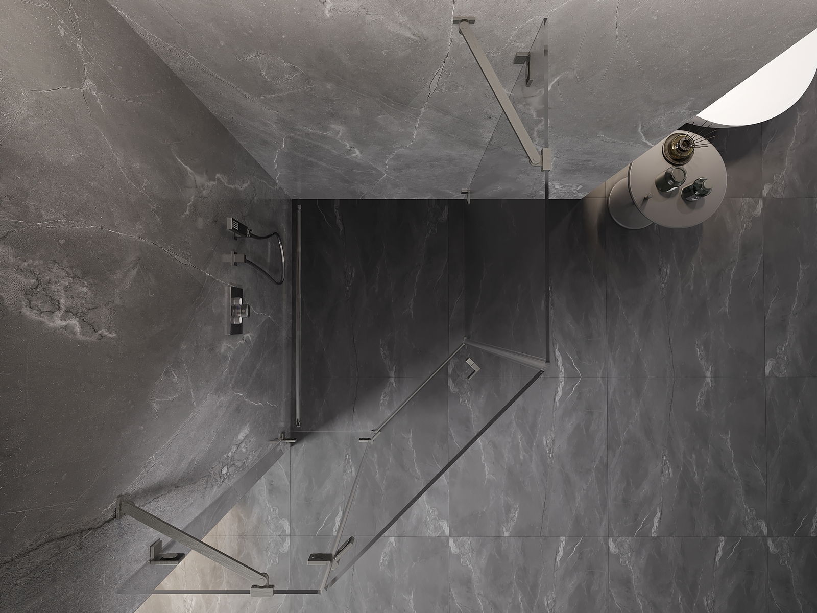 Mexen Lunar cabină de duș pentagonală batantă stânga 90 x 100 cm, transparent, nichel periat - 831-090L-100P-97-00-L