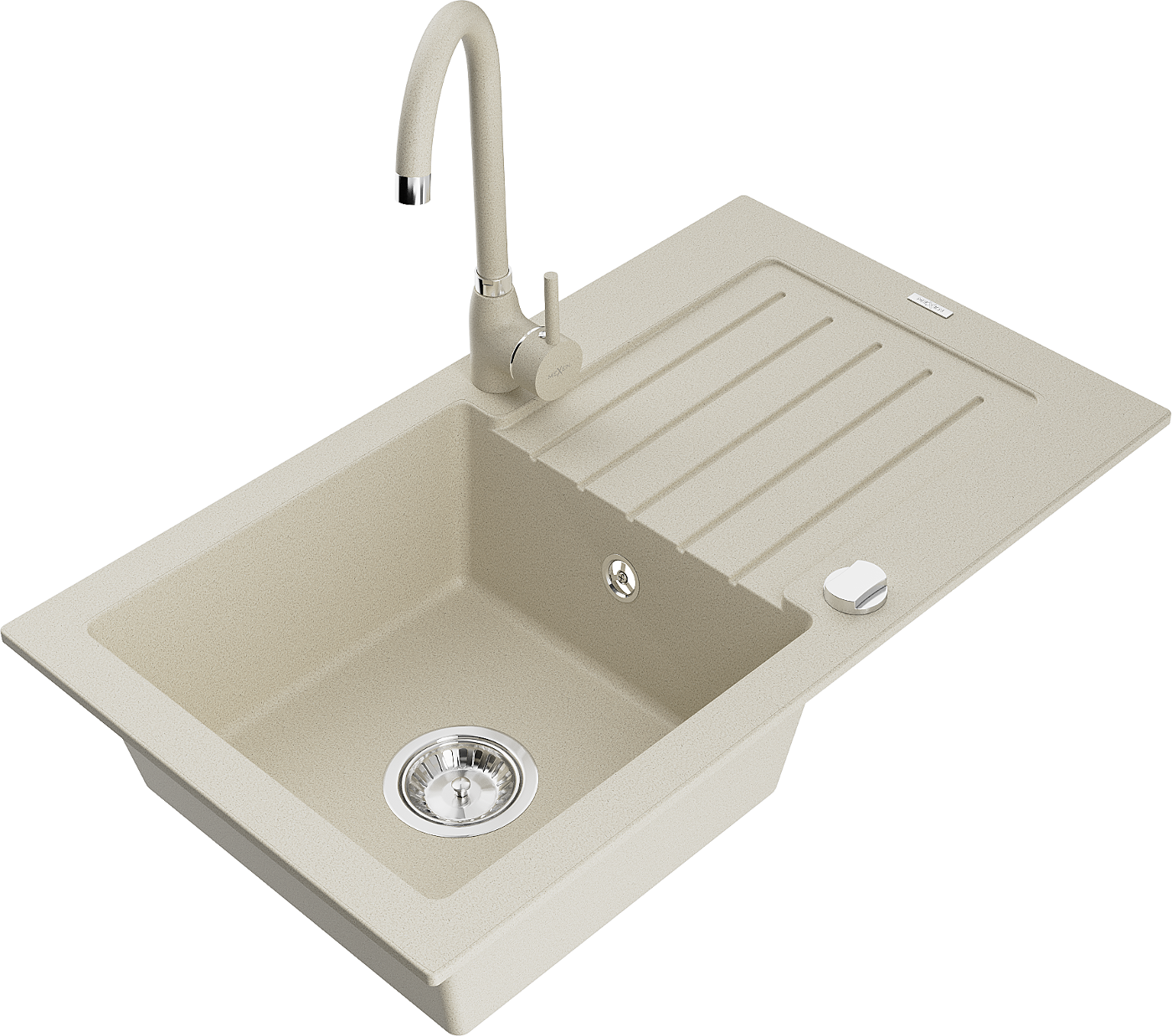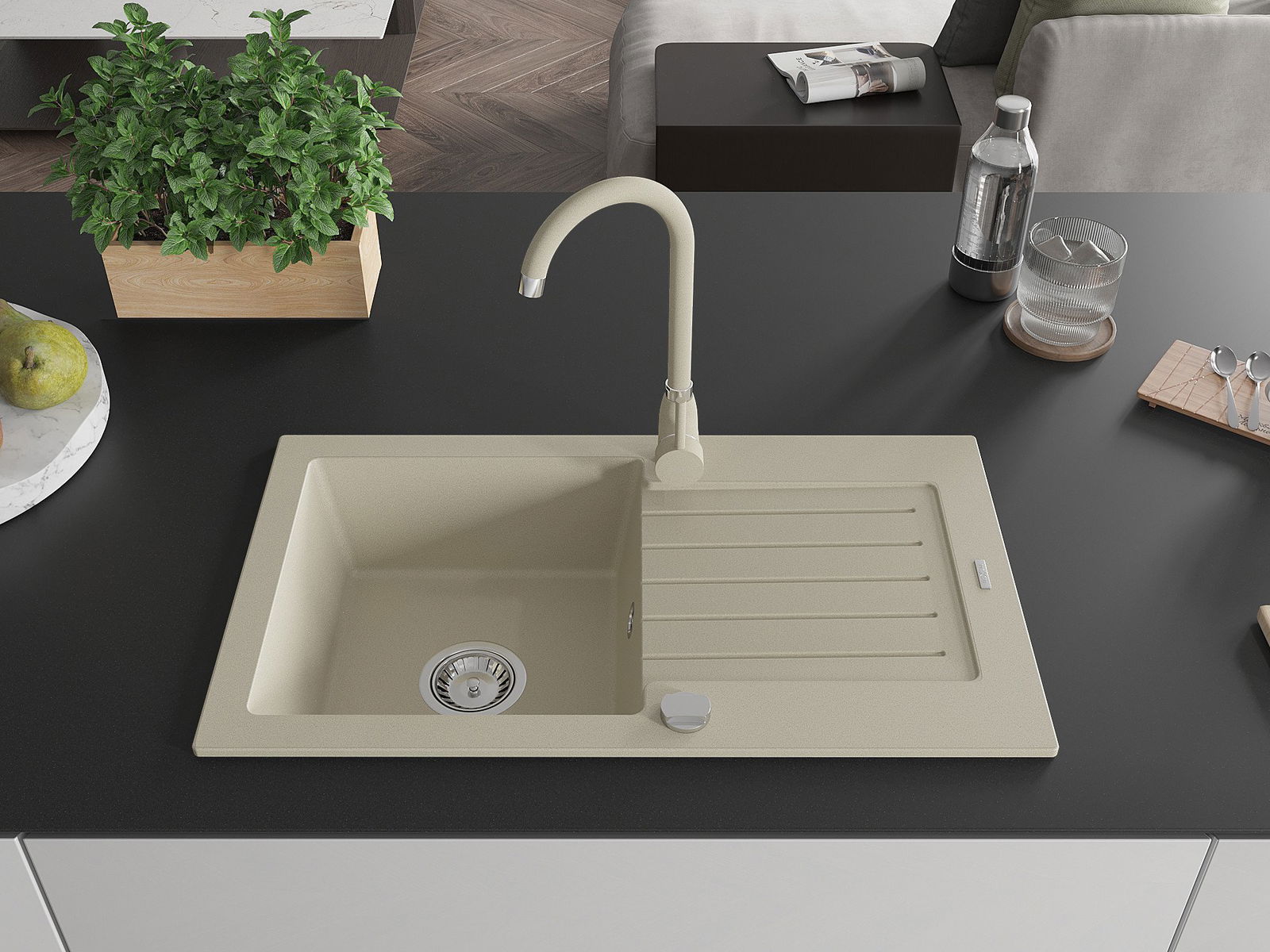 Mexen Pablo chiuvetă din granit cu 1 compartiment, cu scurgător și robinet de bucătărie Telma, bej - 6510-69-670200-69