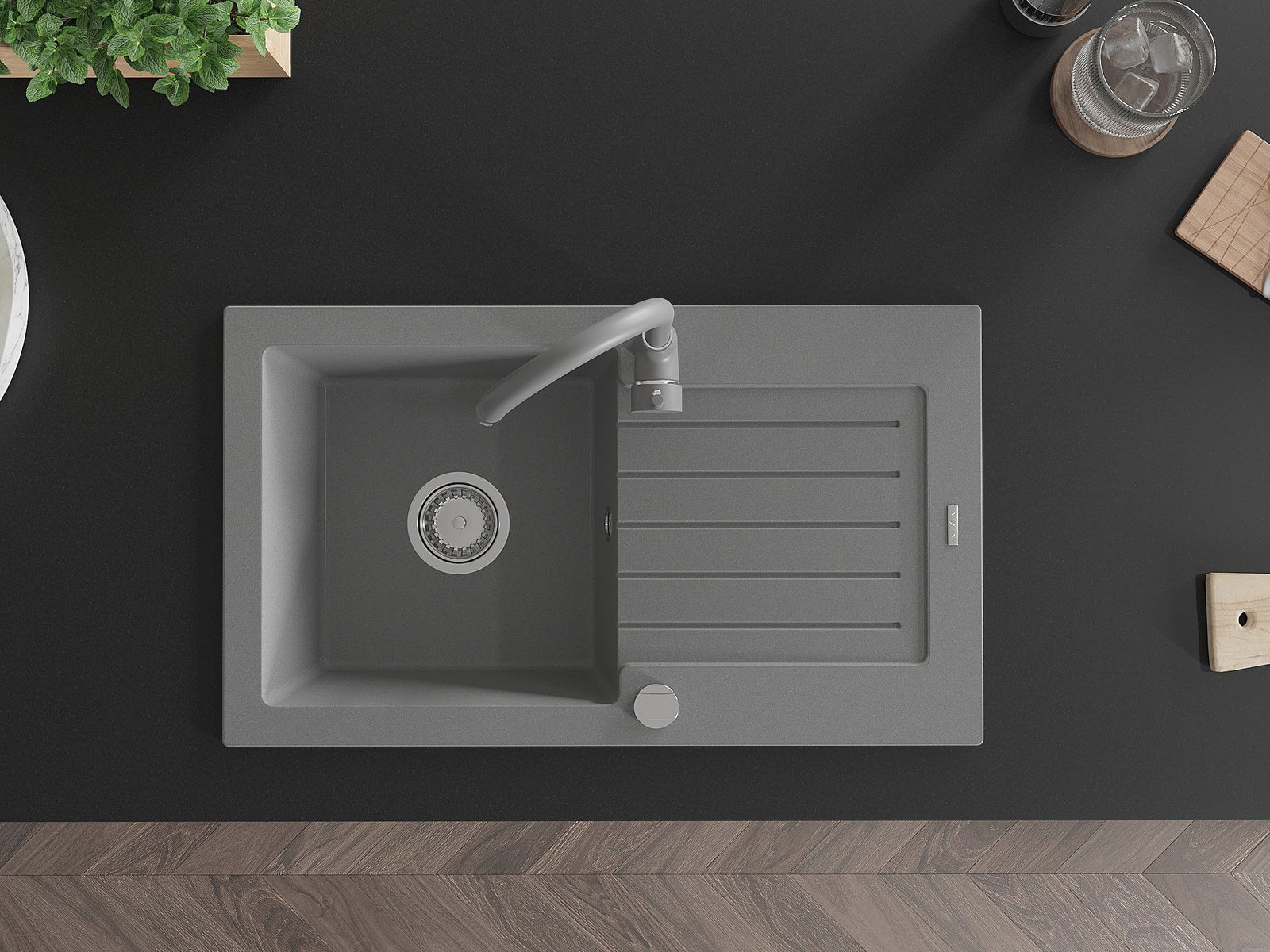Suprafața chiuvetei este rezistentă la pete și decolorarea, datorită căreia este ușor de curățat și își păstrează culoarea mult timp. Estetică și practic completarea fiecărei bucătării.