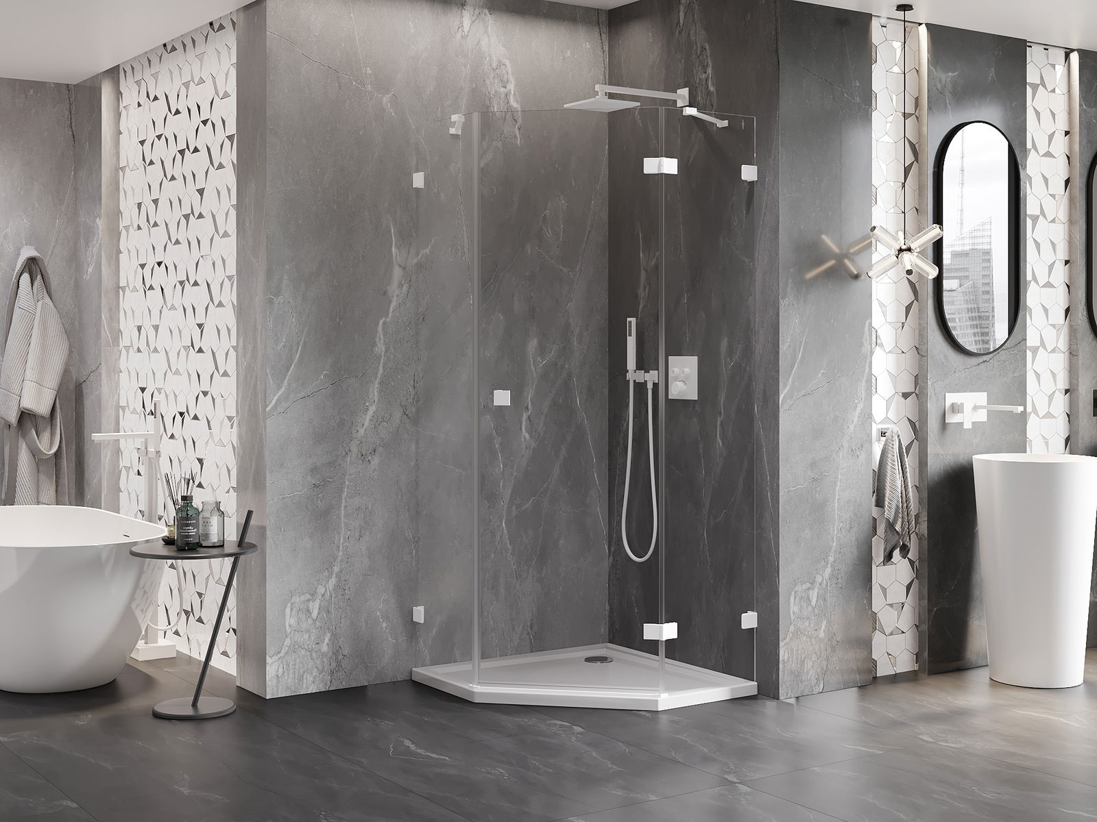 Mexen Lunar cabină de duș pentagonală, deschidere dreapta, 80 x 80 cm, transparent, alb - 831-080P-080L-20-00-P