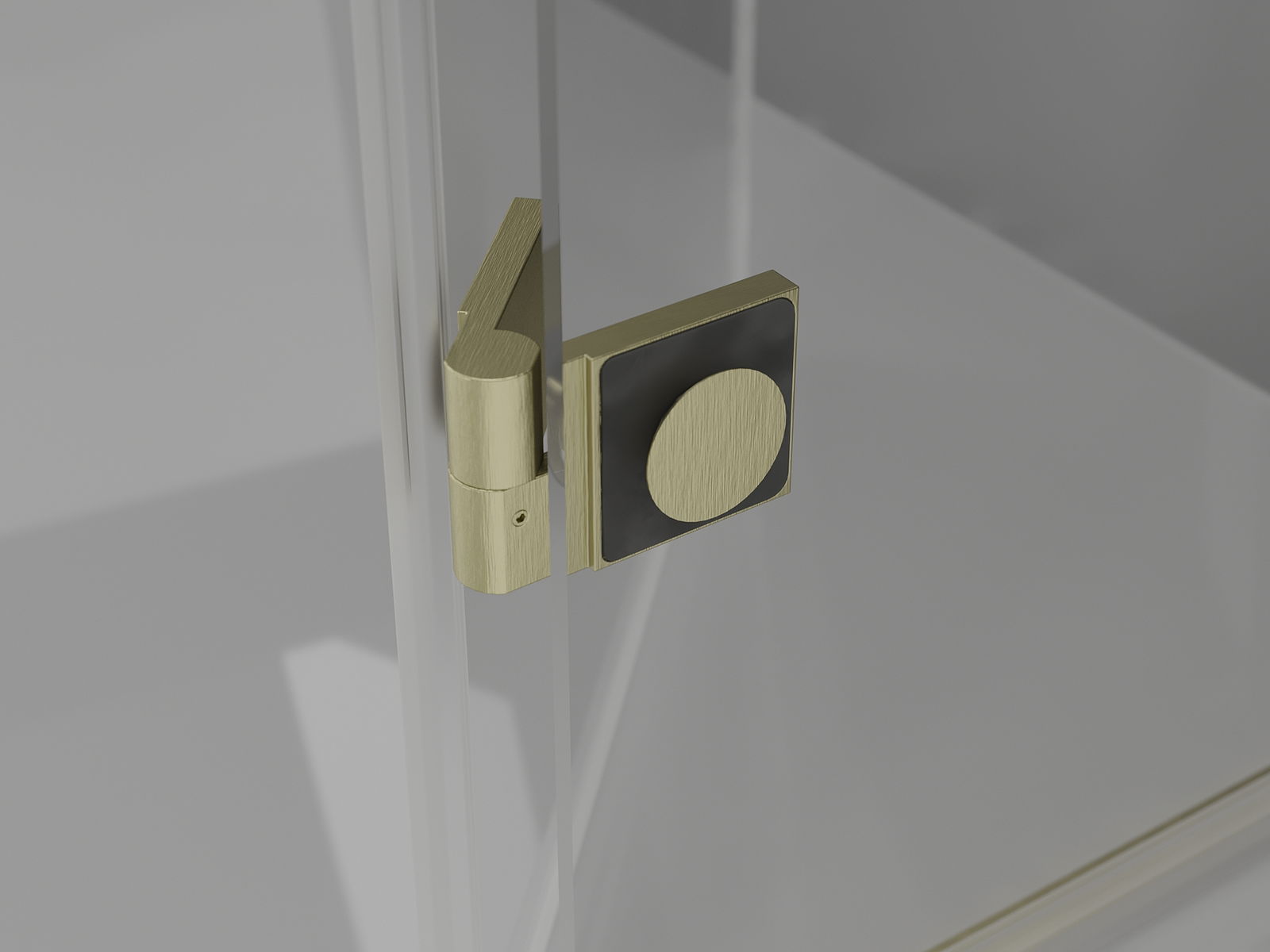Cleme și balamale din alamă, aliniate cu suprafața sticlei