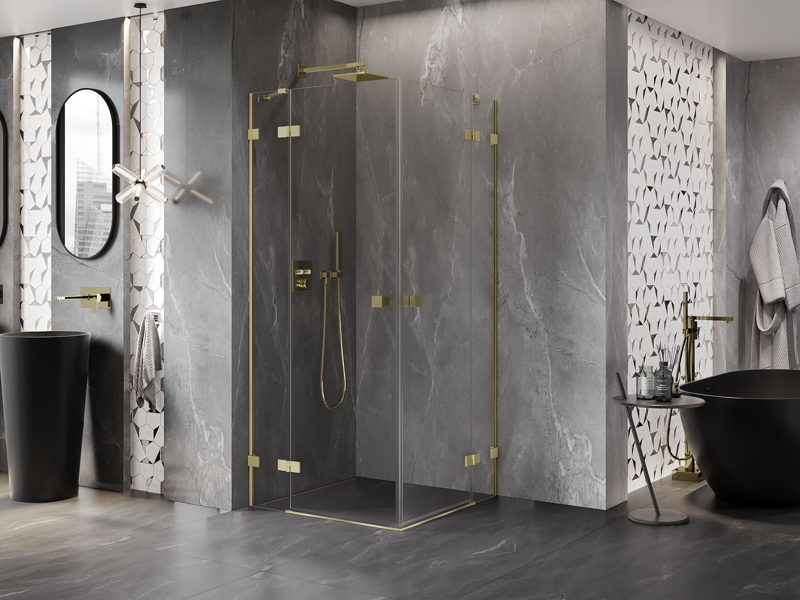 Mexen Lunar Duo cabină de duș cu deschidere 100 x 100 cm, transparentă, auriu periat - 834-100L-100P-55-00