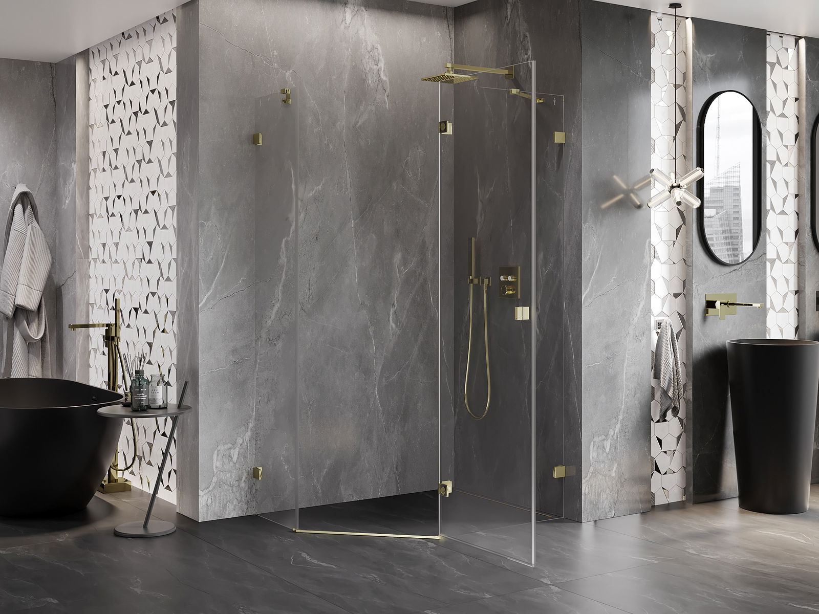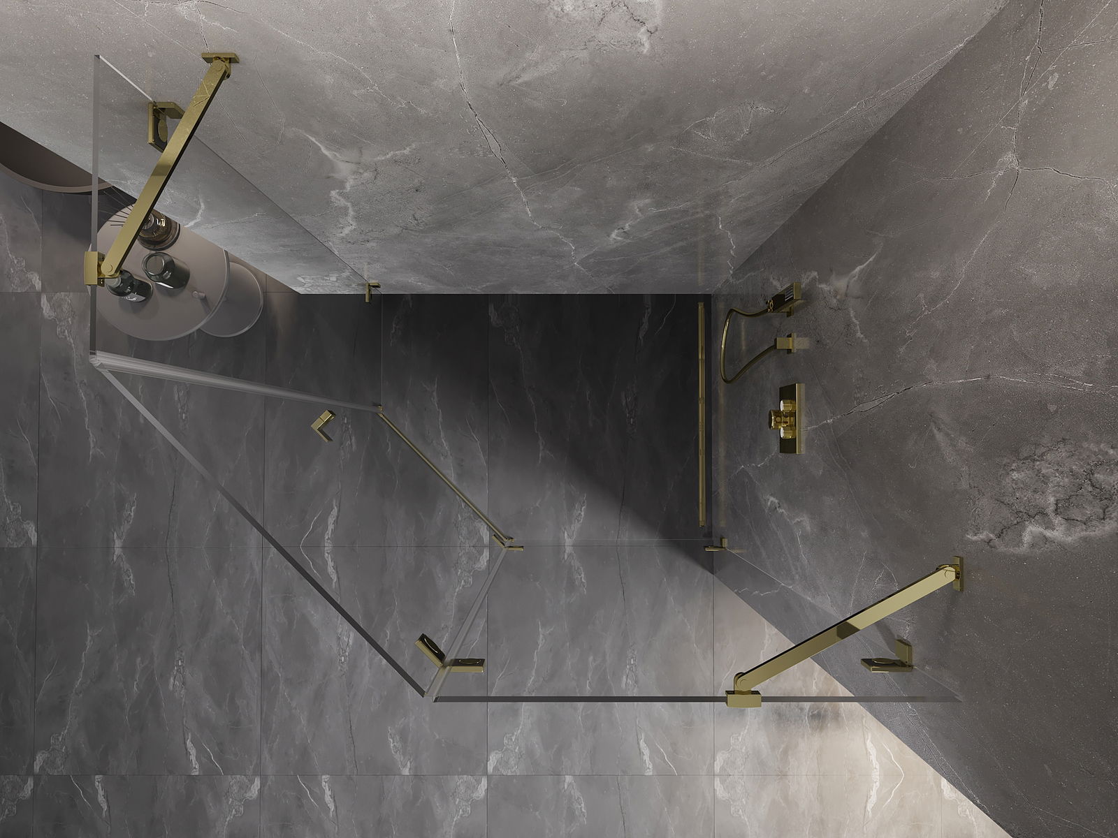 Mexen Lunar cabină de duș pentagonală rabatabilă dreapta 90 x 80 cm, transparentă, auriu - 831-090P-080L-50-00-P