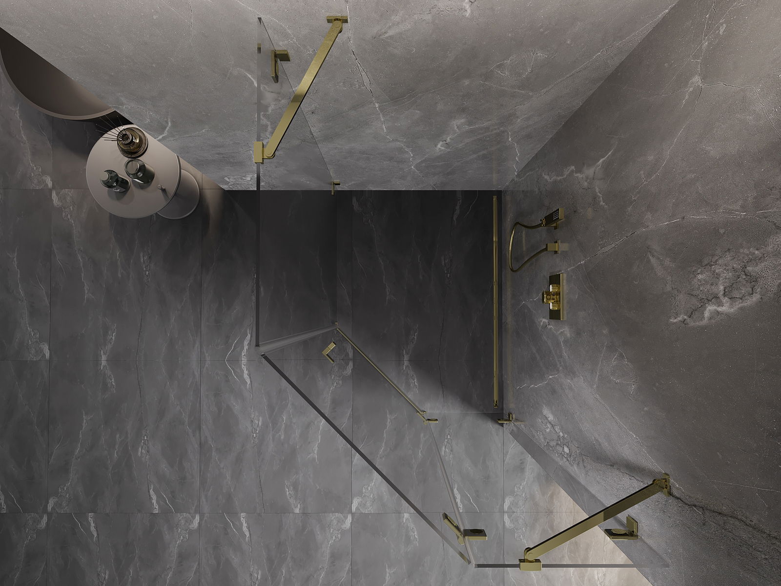 Mexen Lunar cabină de duș pentagonală cu deschidere dreapta 90 x 100 cm, transparentă, aurie - 831-090P-100L-50-00-P