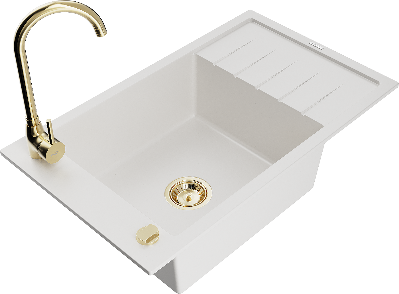 Mexen Elias chiuvetă de granit cu 1 cuvă cu picurător și baterie de bucătărie Telma, alb - 6511-20-670200-50