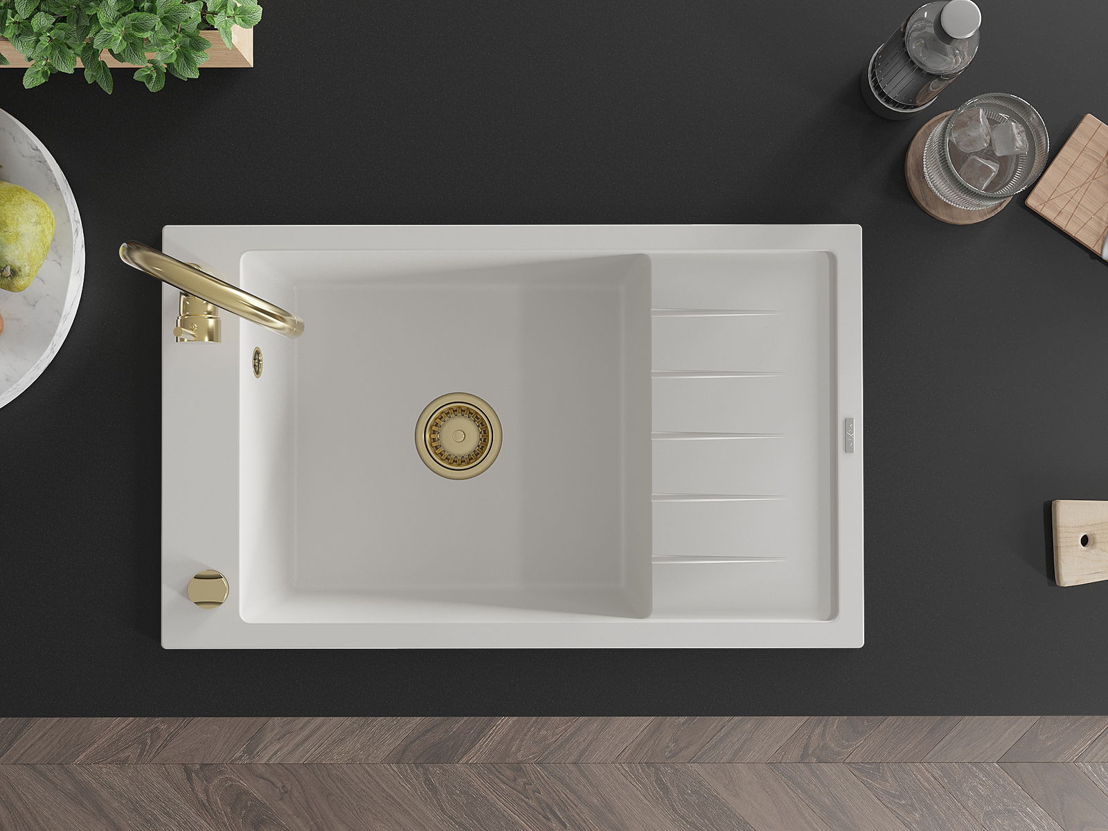 Suprafața chiuvetei este rezistentă la pete și decolorarea, datorită căreia este ușor de curățat și își păstrează culoarea mult timp. Estetică și practic completarea fiecărei bucătării.