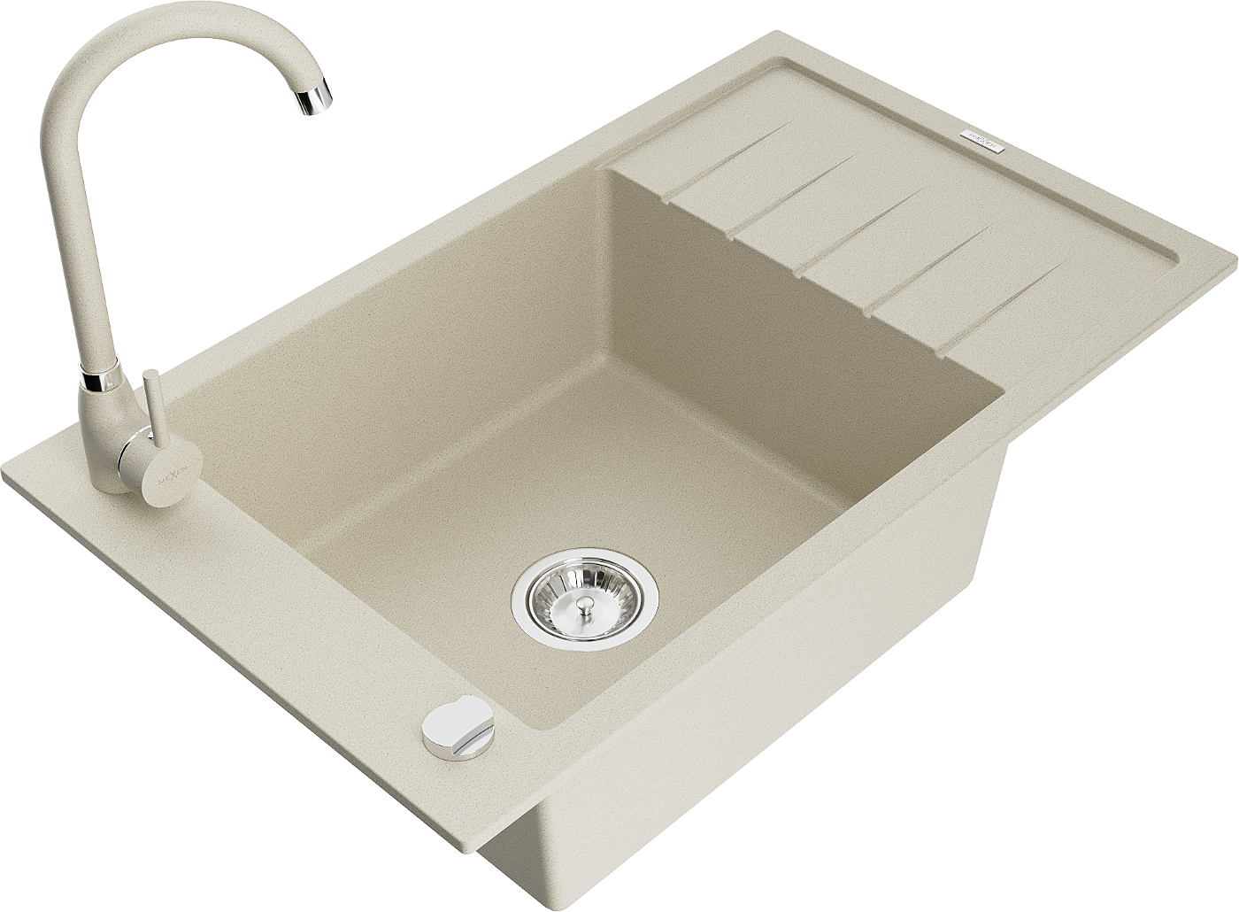 Mexen Elias chiuvetă de granit cu 1 compartiment cu scurgător și robinet de bucătărie Telma, bej - 6511-69-670200-69