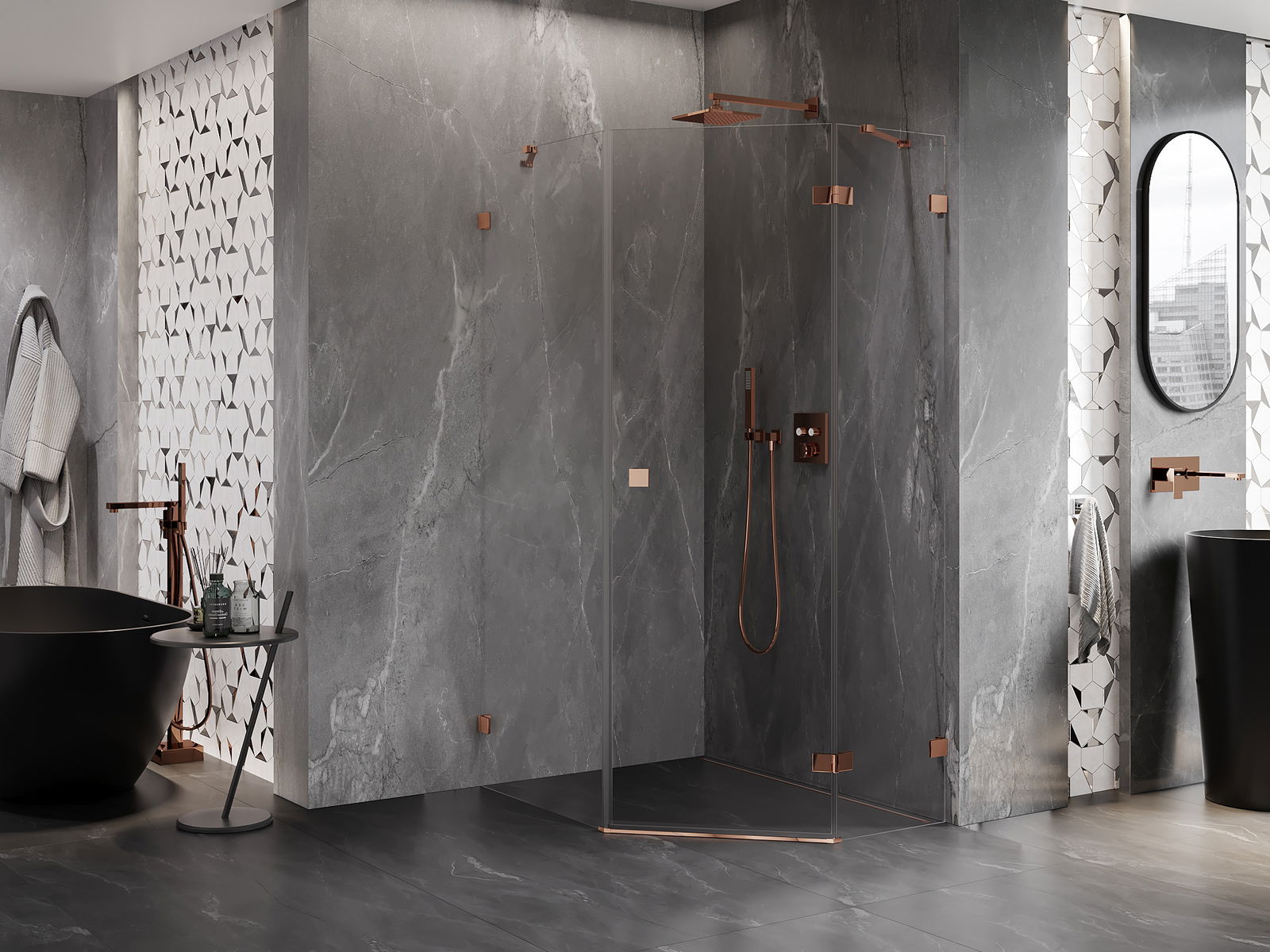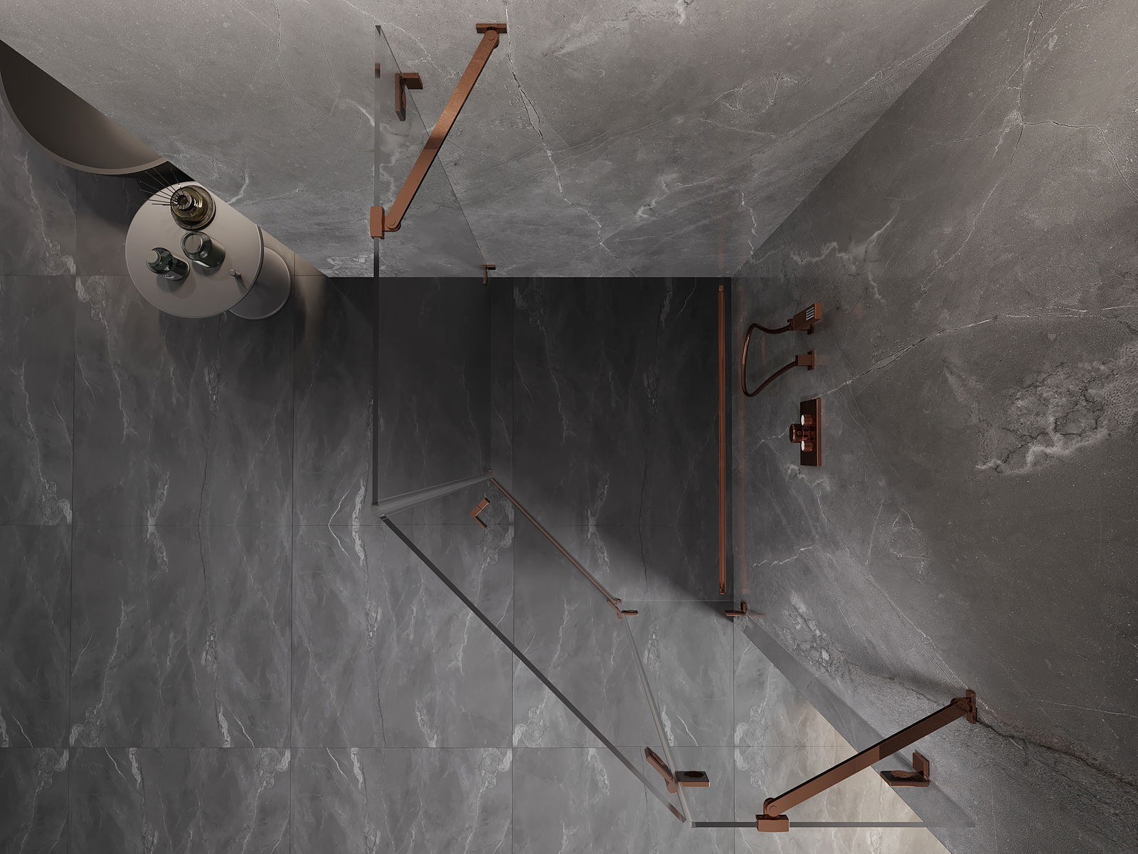 Mexen Lunar cabină de duș pentagonală cu balama dreapta 80 x 90 cm, transparent, aur roz - 831-080P-090L-60-00-P