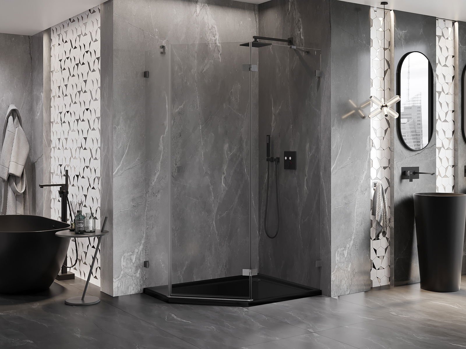 Mexen Lunar cabină de duș pentagonală rabatabilă dreapta 100 x 80 cm, transparentă, gri armat periat - 831-100P-080L-66-00-P