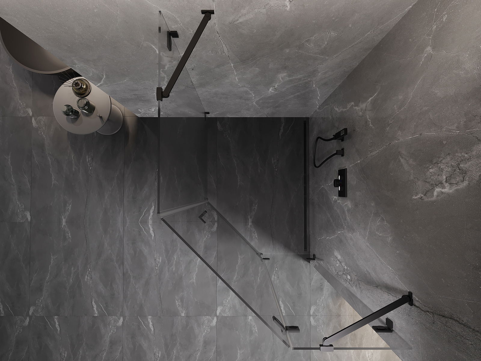 Mexen Lunar cabină de duș pentagonală batantă dreapta 90 x 100 cm, transparentă, neagră - 831-090P-100L-70-00-P