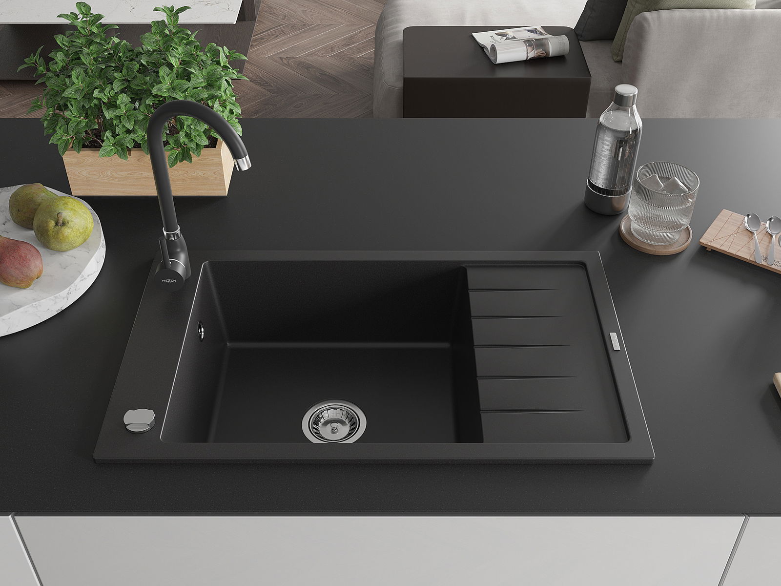 Chiuveta este confecționată din granit de înaltă calitate. Este un complement elegant și, mai ales, practic pentru fiecare bucătărie, indiferent de stilul său. Durabilitatea de înaltă calitate și granit asigură mulți ani de utilizare.