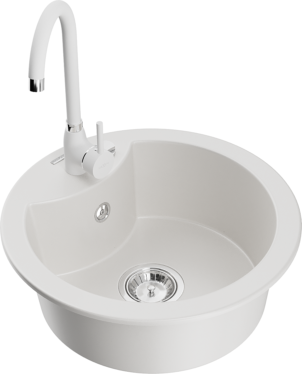 Mexen Diego chiuvetă granit 1-cameră cu baterie de bucătărie Telma, alb - 6512-20-670200-20