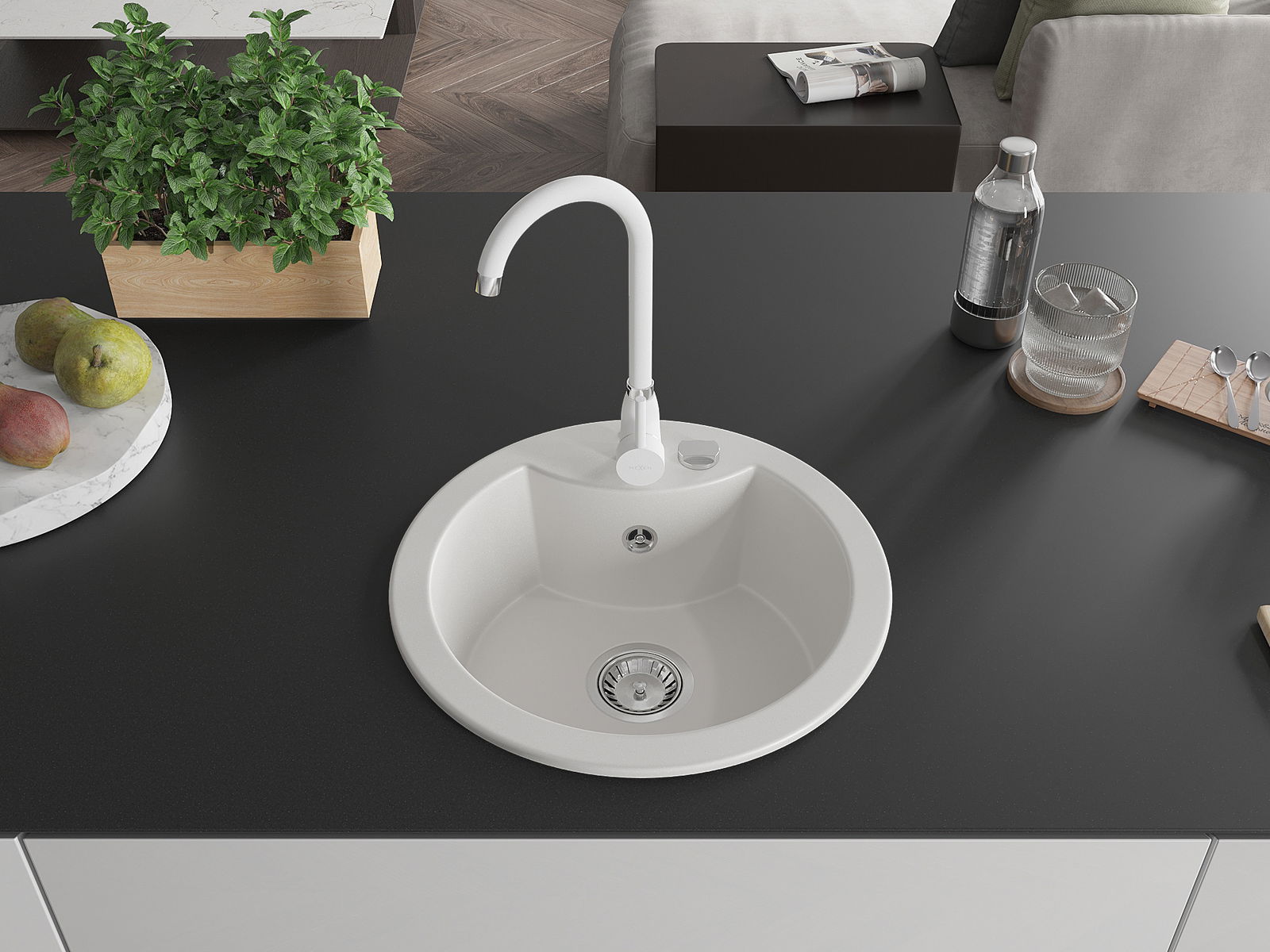 Suprafața chiuvetei este rezistentă la pete și decolorarea, datorită căreia este ușor de curățat și își păstrează culoarea mult timp. Estetică și practic completarea fiecărei bucătării.