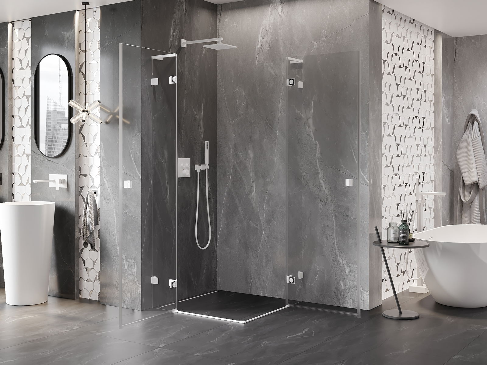 Clemele și balamalele sunt fabricate din alamă foarte durabilă și, în plus, formează o suprafață aliniată cu sticla. Este o alegere excelentă care îmbină eleganța, durabilitatea și designul modern. Datorită acestor soluții, dușul câștigă în estetică și facilitează întreținerea curățeniei.