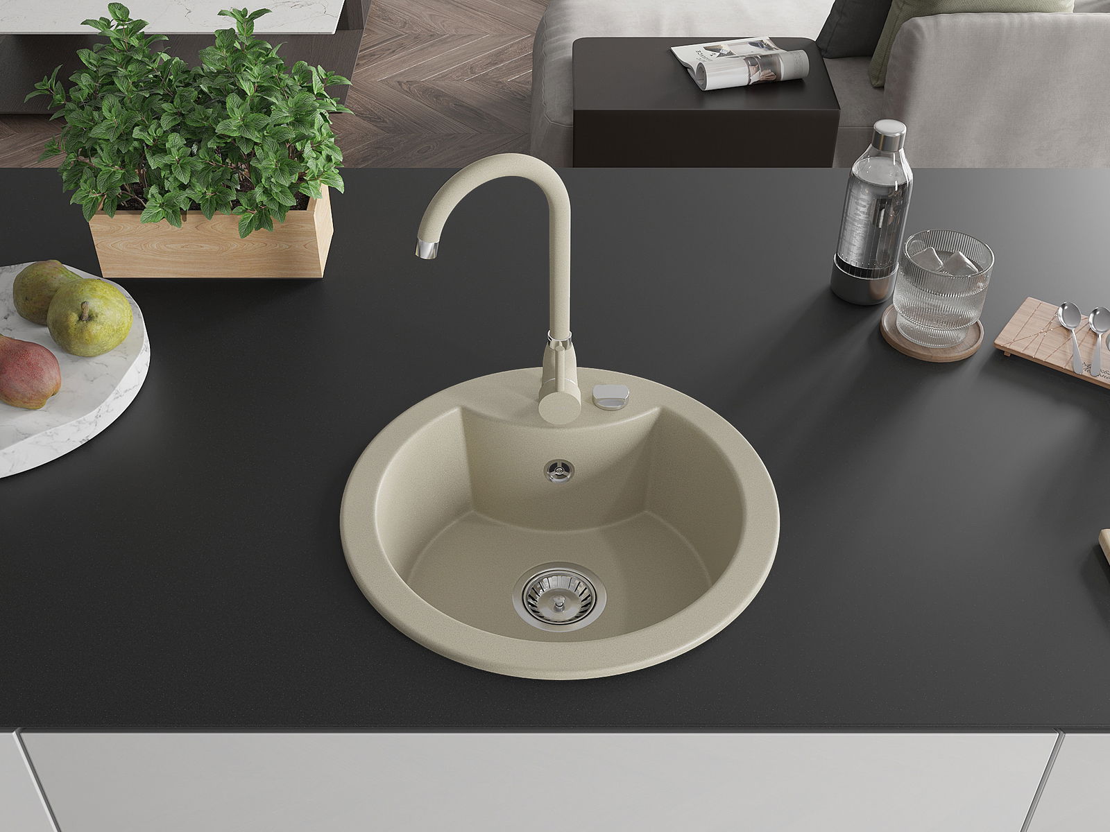 Suprafața chiuvetei este rezistentă la pete și decolorarea, datorită căreia este ușor de curățat și își păstrează culoarea mult timp. Estetică și practic completarea fiecărei bucătării.